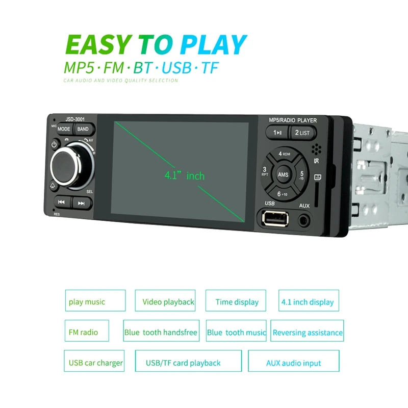 Авторадио 1 Din автомобильное радио JSD-3001 4,1 MP5 Автомобильный плеер пресс-экран стерео Bluetooth 1Din авто радио