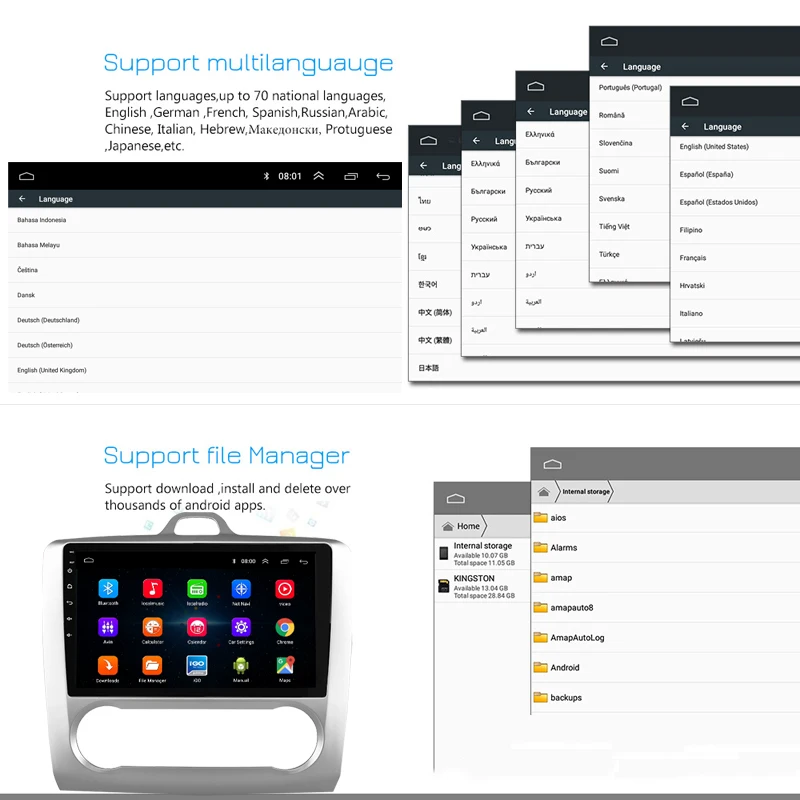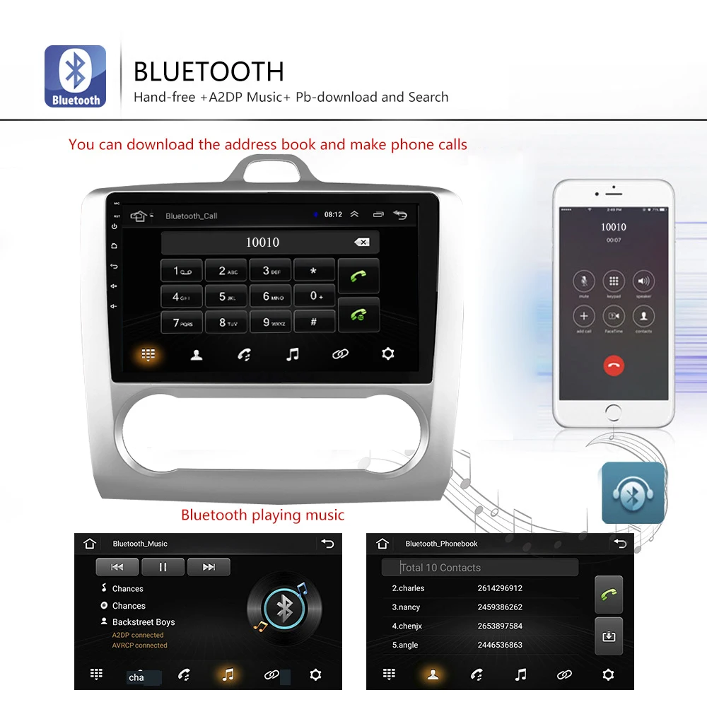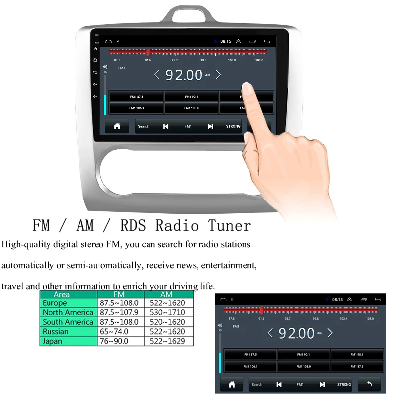 Автомагнитола для Ford Focus Exi AT 2004-2011, Универсальный стерео аудиоплеер с четырёхъядерным процессором, GPS, Android 8,1, для Ford Focus Exi AT 2004-2011, 1024x600 Рекомендуемые: Quad core 2. Операционная система Android 8,1 (последняя версия) 3. Встроенный RDS 4, встроенный 1 ГБ ОЗУ и 16 Гб ПЗУ 5, встроенный 2USB вход Ресурсы программного обеспечения Операционная система: Android 8,1 Размер экрана: 9 дюймов Процессор: 1,5 ГГц четырехъядерный процессор Входная мощность: 4*60 Вт. ОЗУ: 16 Гб Разрешение: 1024*600 Экран: емкостный сенсорный экран Экран Wi-Fi: поддержка Разъем USB, поддержка GPS: Поддержка Особенности: 1. Разрешение 1024*600: обеспечивает высокое качество изображения. 2. Поддержка встроенных динамиков. Микрофон. Bluetooth. Рулевое колесо обеспечивает безопасное вождение. 3. Меню языков: английский, русский, многоязычный. 4. Поддержка DVR, задней камеры, функции OBD. 5. Используйте эквалайзер для улучшения качества звука. Используйте EQ для регулировки звука для достижения наилучших результатов. 6. Размытый поиск, программа "от a до Z" 7. Поддержка функции Bluetooth громкой связи, встроенный микрофон 8. Дисплей основного меню «сделай сам»: вы можете перетянуть Панель поиска, weather forecast, music/radio/BT-стереопроигрыватель, приложение или другое Любимое устройство для отображения в основном меню. 9. Встроенные часы и календарь, они имеют часы в режиме реального времени, чтобы отображать время, часы/дату/неделю, регулируемые. 10. Встроенный Wi-Fi ключ, Поддержка стандарта 802.11b / g / n WLAN, высокая производительность, низкий расход энергии Радио тюнер, 30 радиостанций (FM: 3*6) 11. Поддержка онлайн-навигации Google Maps, если вы находитесь в Интернете, вы можете использовать GPS для просмотра 12. Поддержка мультимедийного плеера Android, возможность проигрывания музыки, фильмов, фотографий, подключенных к tf-карте. Онлайн-развлечения, онлайн-видео Поддержка, ТВ, фильмы, музыка, радио, Youtube, Yahoo, MSN... 13. Вы можете воспроизвести стереозвук через Bluetooth на вашем телефоне.