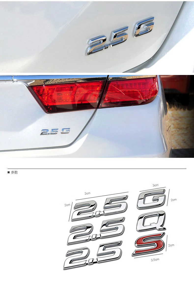 Car Styling 3D Metal Sticker 2.5G 2.5Q 2.5S Engine Capacity Emblem Logo Badge Car Side Fender Trunk Decal For Toyota Camry Reiz