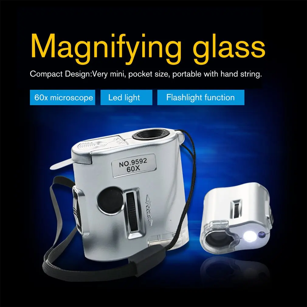 9592 60X Лупа мини-микроскоп со светодиодами ювелирные изделия антиквариат идентификация Увеличительное Стекло Лупа Стекло LED УФ свет