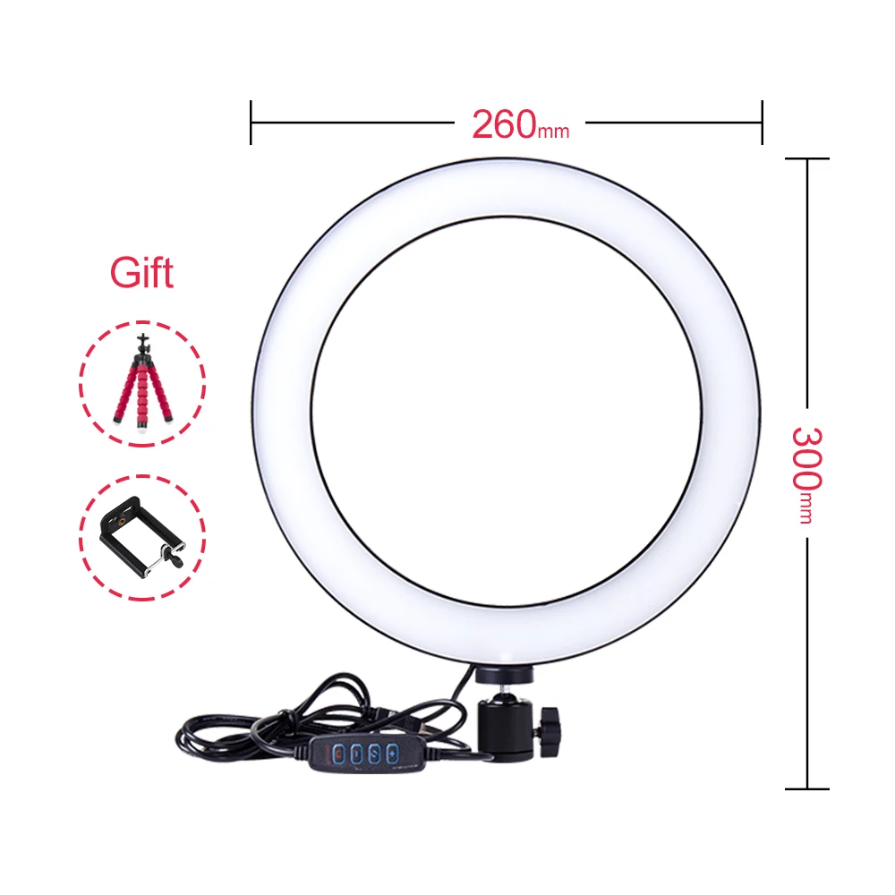 Описание продукта:: Название: кольцевой светильник Диаметр: 15/16/26 см Материал: алюминий + A Переходник: Универсальный Светильник источник света: светодиодный SMD Индикация во время зарядки: USB зарядка Источник питания: Мобильная мощность Высота штатива: 18 см Мощность: 5/10 Вт Светильник жизнь: 6000H Светодиодный светильник: 64 шт. светодиодный s Диапазон затемнения: 1%-100% Цветовая температура: 5500K Использование для: светильник для фотостудии, Yotube Video Live, продукт/рекламная фотография, свадебное искусство Технические характеристики: -Он широко применяется на светильник для наружной фотосъемки, светильник для дома, портрета, моды, свадебного искусства, фотографии рекламы, видеосъемки и т. Д. -Мигающий заполняющий светильник для фотографии, регулируемый светильник для вспышки. -1/4 Универсальный винт отверстие интерфейс. -USB шнур питания длиной 200 см. -10 режимов яркости, 3 режима цвета, плавное затемнение, белый светильник, теплый светильник, мягкий светильник. Посылка список: 1*15/16/26 см селфи кольцо светильник/светодиодный светильник кольцо для макияжа 1 * вращающейся головкой 1 * штатива-треноги 1 * держатель для телефона Заводская цена и лучшее качество, поддержка распределения и Прямая поставка.Смотрите так же другие товары: