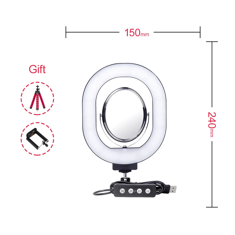 15/16/26 см светильник кольцо с губкой штатив телефон клип для сотового телефона 3200-5500K 3 режима usb-портами и светодиодным индикатором Макияж Видео светильник для селфи лампа