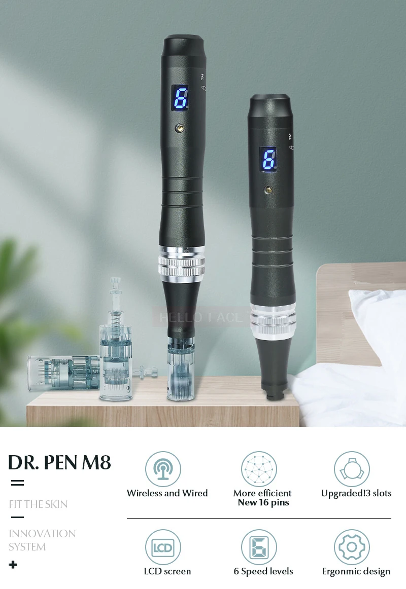 Dr.pen M8-это новейший продукт в Серии Dr pen. Укрепляет кожу для поглощения красоты, впитываемость кожи может достигать более 40 раз, и улучшает кожу более 50% Получите светящиеся лучшие профессиональные инструменты для продвижения красивой, здоровой кожи, в комфорте вашего дома.