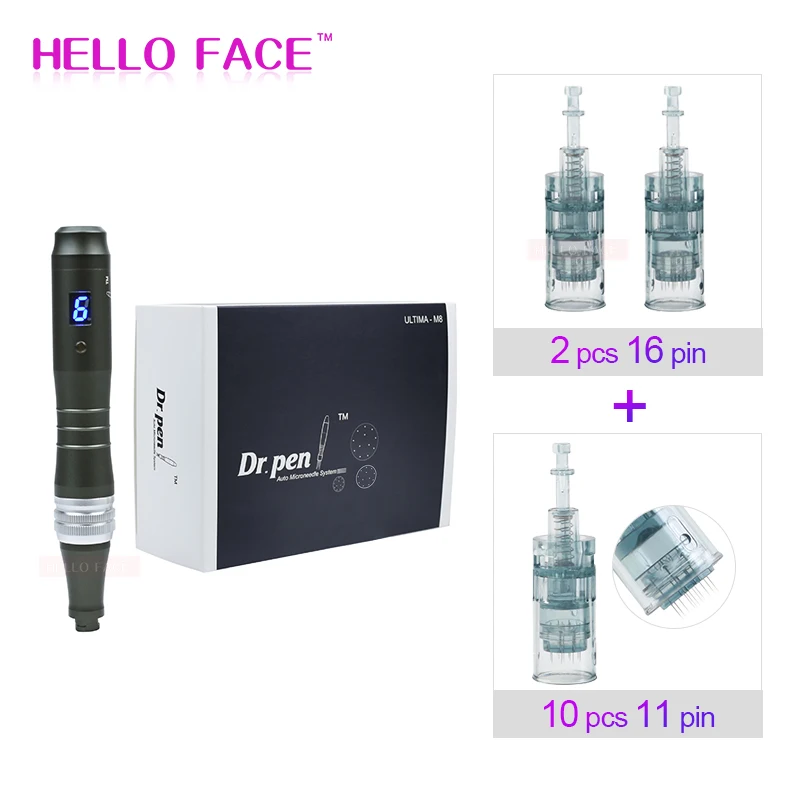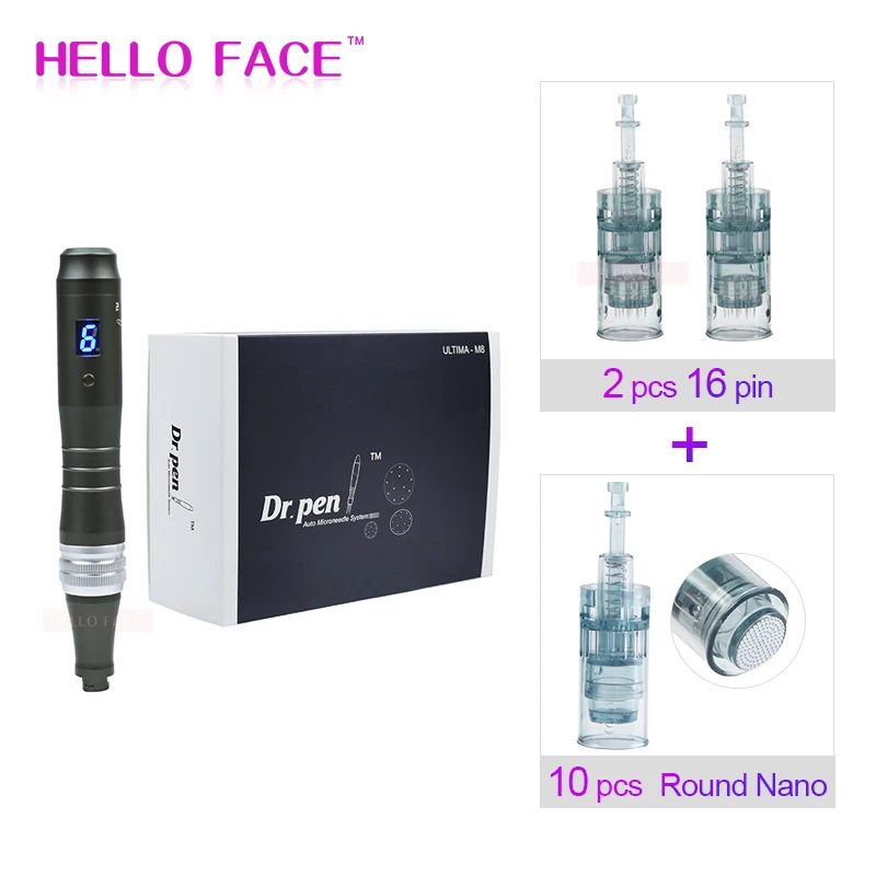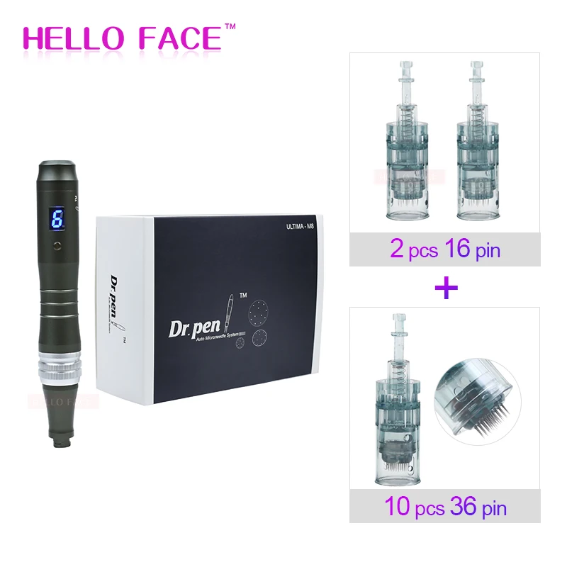1 x M8-W Dr. Pen 2x16 штифтов иглы картриджи 10 картриджей xNeedles (вы можете выбрать 10 шт 16 pin или 10 шт 36 pin или 10 шт 42 pin или 10 шт Круглые Nano) 1 x адаптер питания (штепсельная Вилка европейского стандарта/штепсельная вилка британского стандарта/штепсельная вилка австралийского стандарта/штепсельная вилка американского стандарта) 1 x Руководство пользователя 1 x коробка