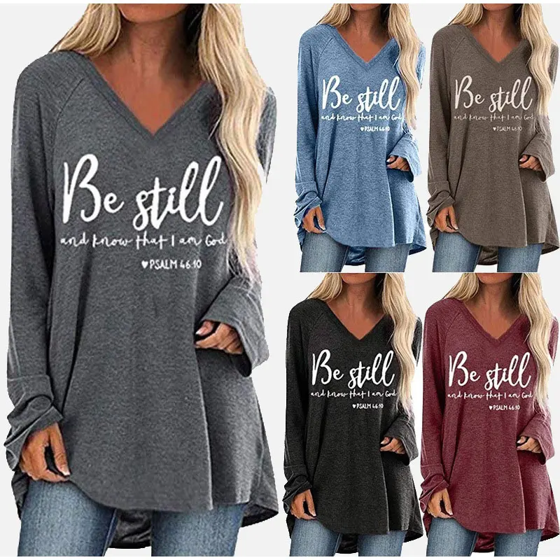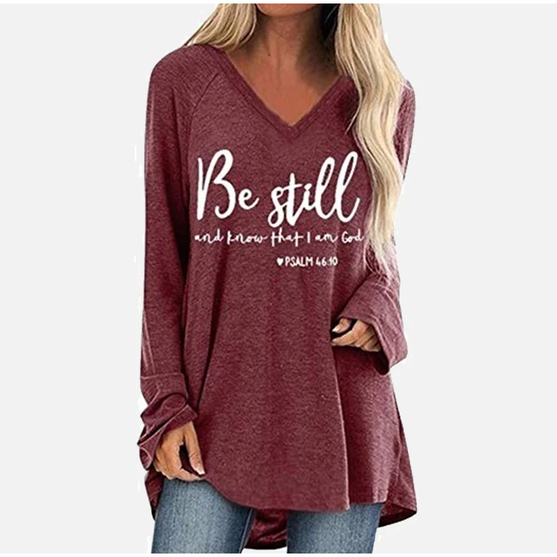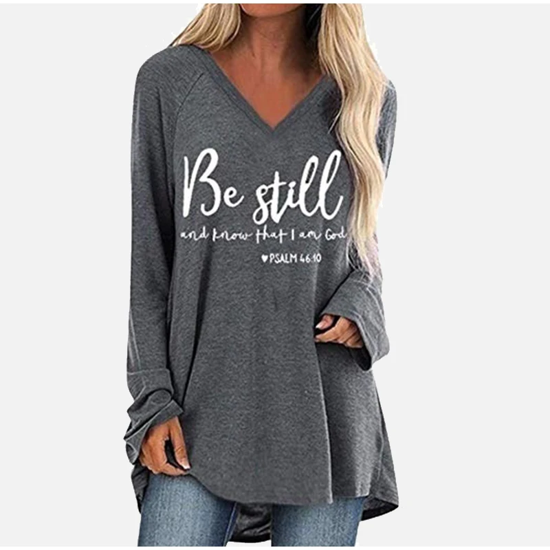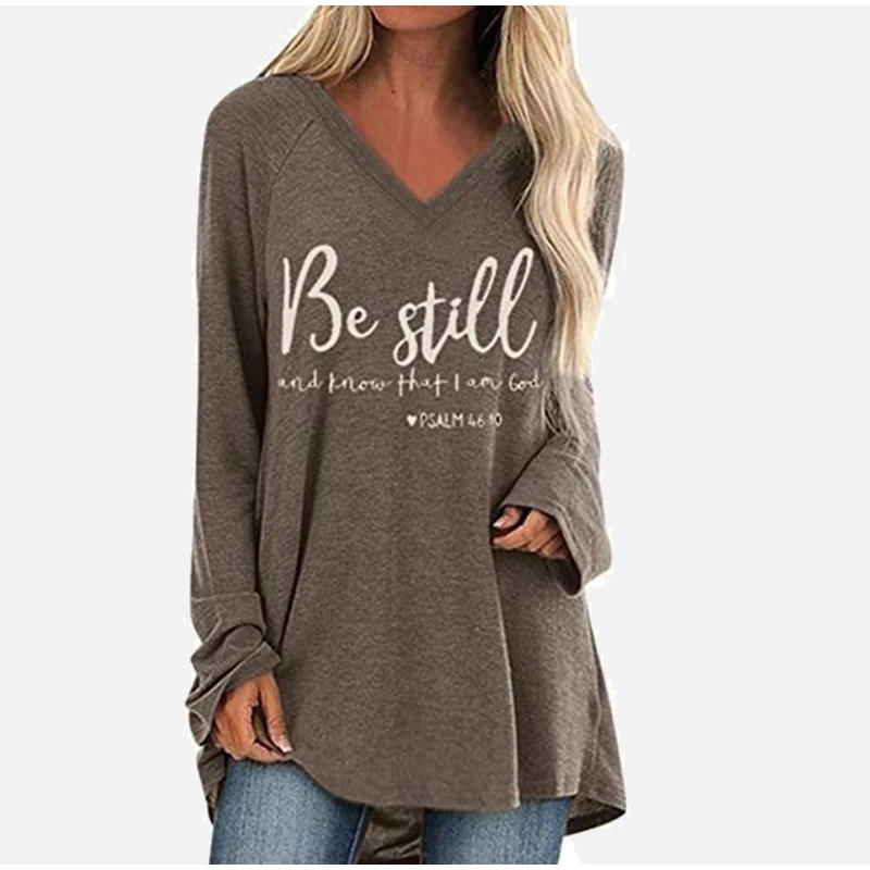 Женские свободные пуловеры с буквенным принтом, повседневные Однотонные блузки с v-образным вырезом и длинным рукавом, весна 2020, большие размеры 5XL