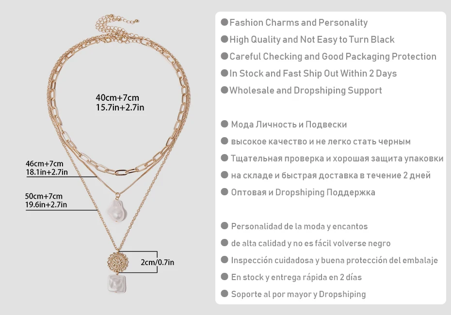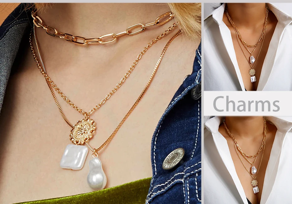 Цвет: белый жемчуг с золотой цепочкой ожерелье для женщин Стиль: Женская мода Корейская многослойная цепочка ожерелье модные украшения Тип: 3 шт отделимые жемчужные ожерелья для женщин Функция: модные ожерелья 2020 Размер: как на картинке