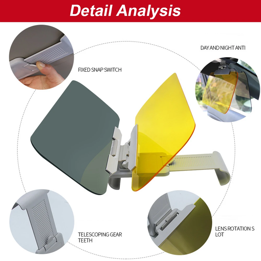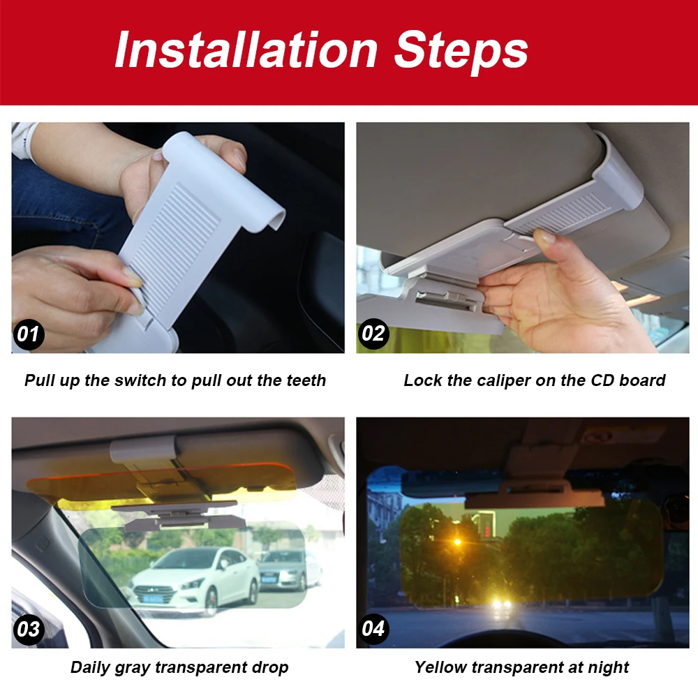 [Поляризационный козырек для дня и янтарь для ночи] наш серый автомобильный солнцезащитный козырек расширитель использует поляризационную технологию НАСА, чтобы фильтровать отраженный светильник, устраняет рассеянные и ослепляющие блики, которые причиняют визуальный дискомфорт в любой солнечной ситуации. Желтый Козырек может затемнить сильную фару от приближения к машине