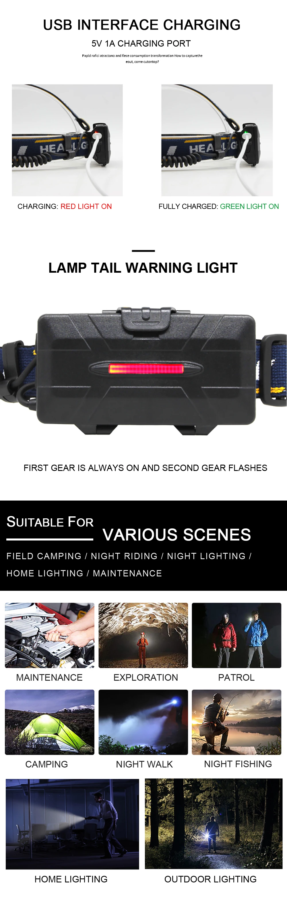 Портативный налобный фонарь High Powe XHP 50 светодиодов зарядка через USB для рыбалки с