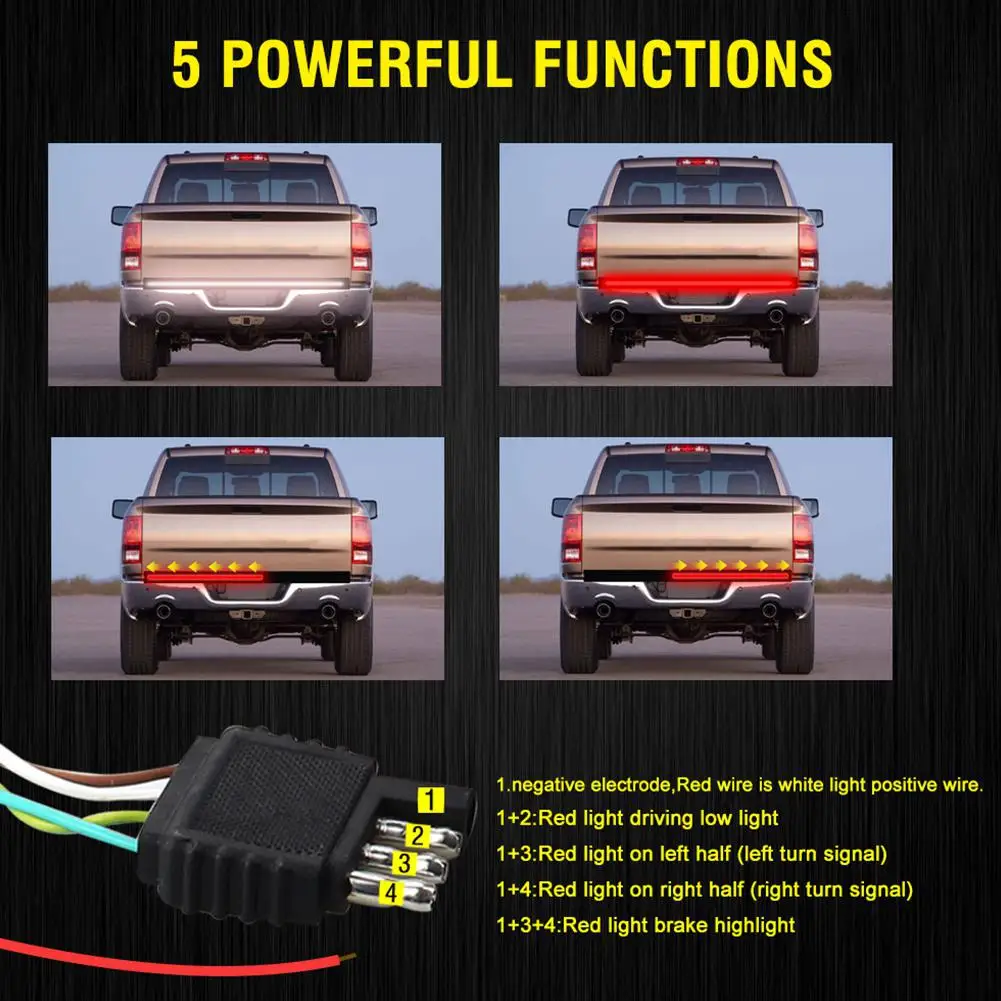 Пять режимов: положительный белый свет, красный низкий свет вождения, красный свет поворота влево, красный свет поворота вправо, красный свет торможения красного света