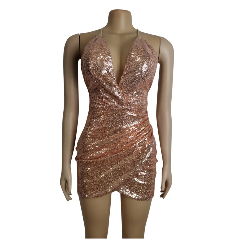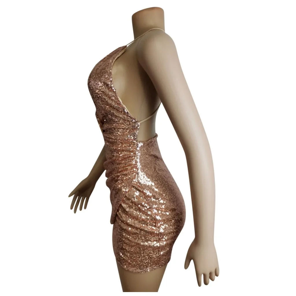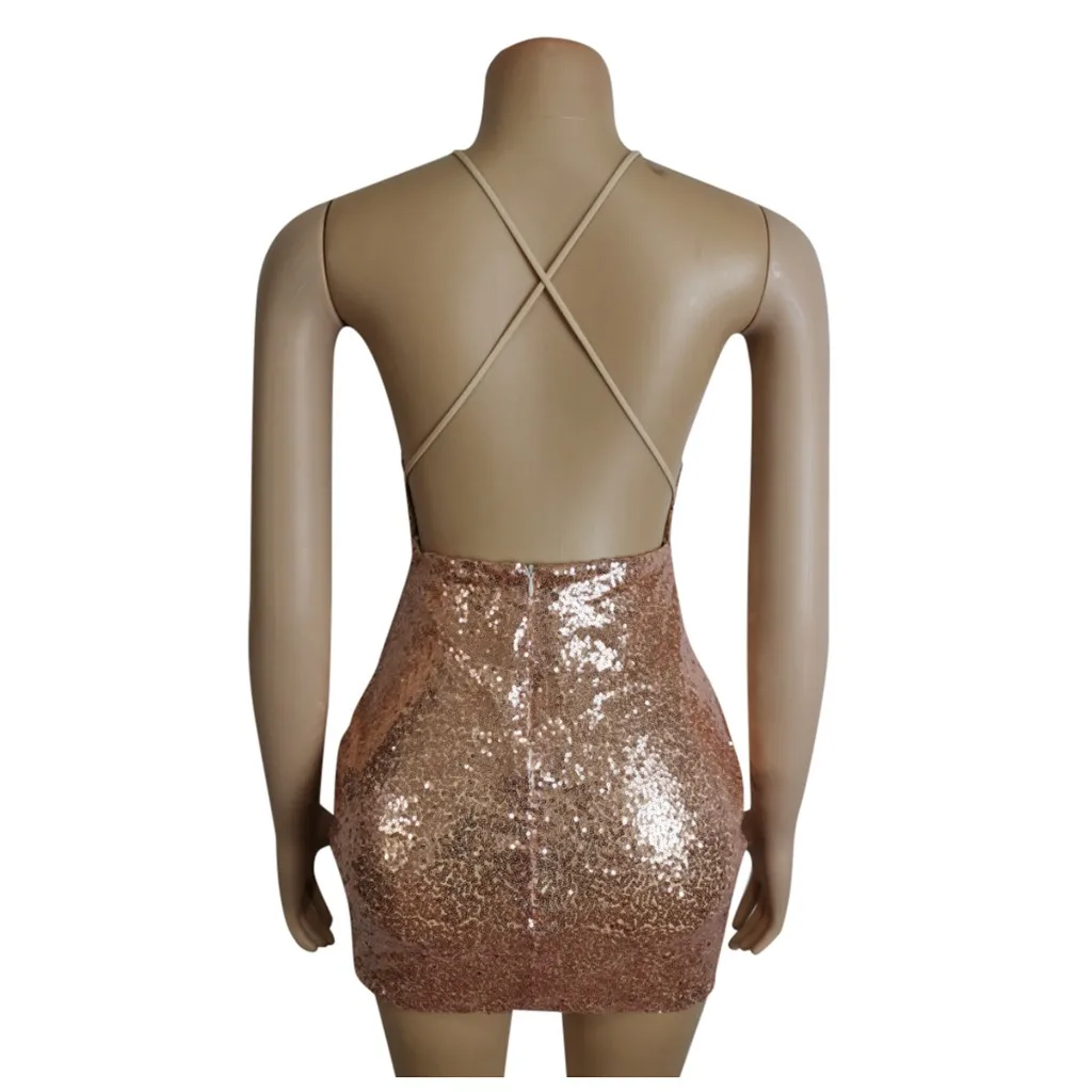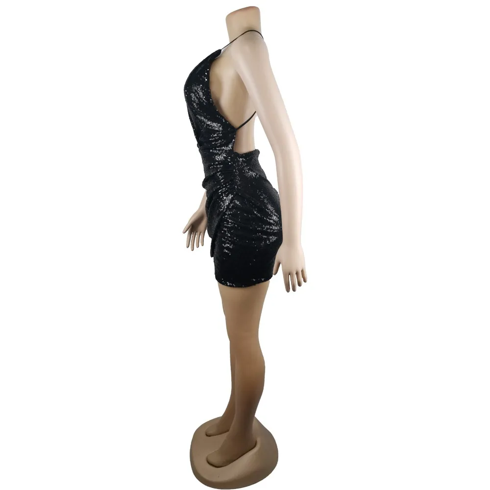 Женское модное однотонное мини-платье с блестками и v-образным вырезом, платье с открытой спиной