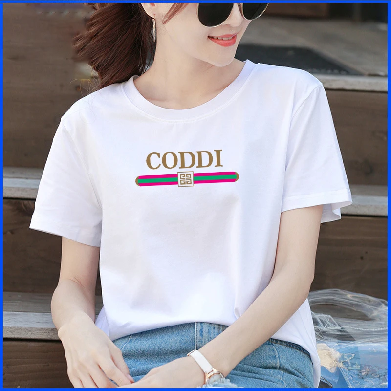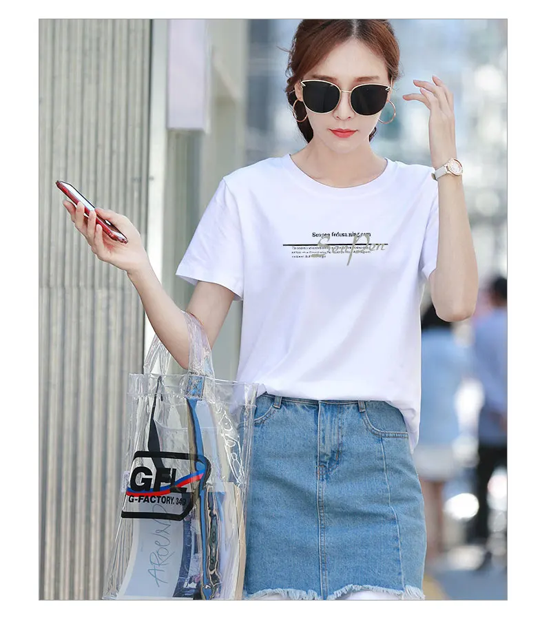 Весна и лето 2020, новая женская футболка, свободная, большой размер, хлопок, половина рукава, Простая рубашка, круглый вырез, рубашка в Корейском стиле