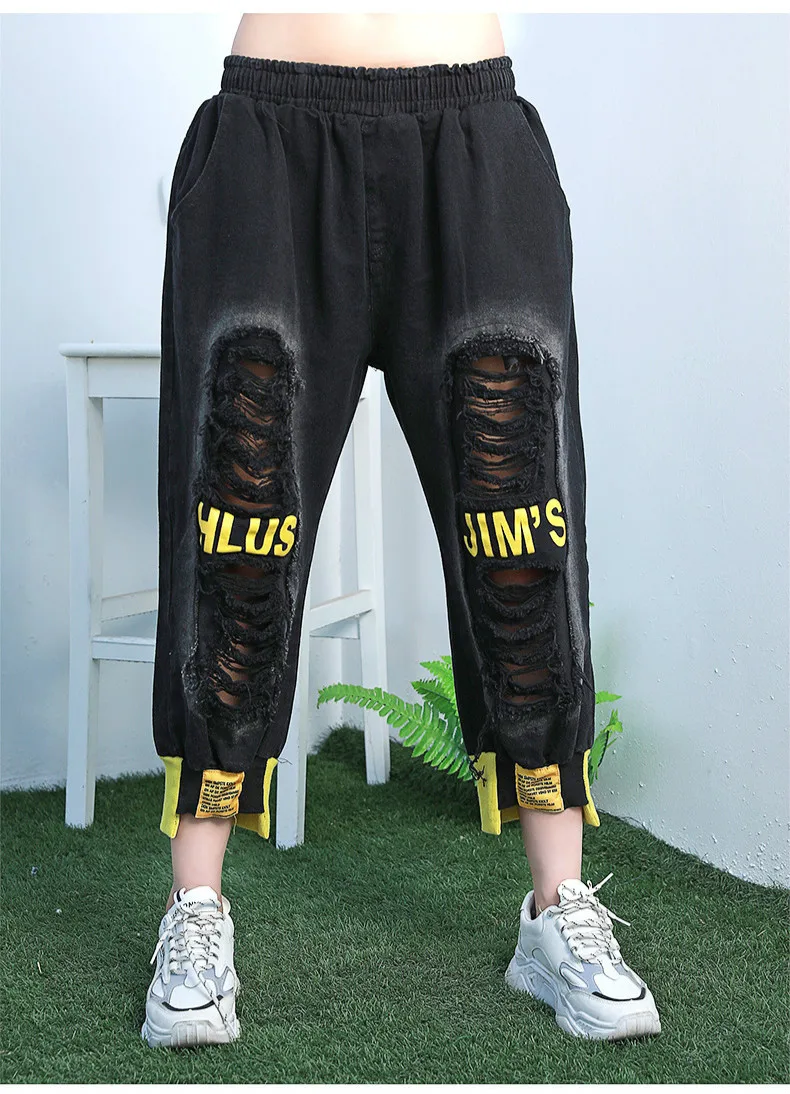 Летние корейские винтажные лоскутные джинсы с дырками