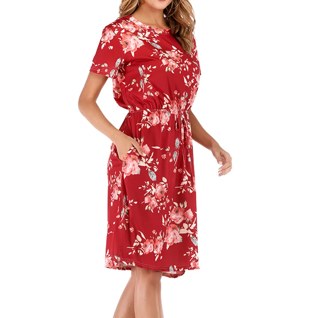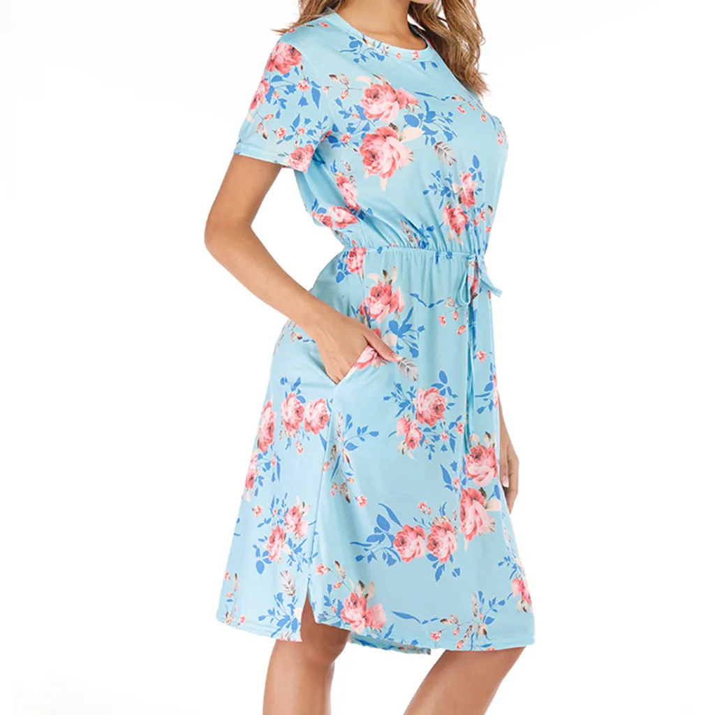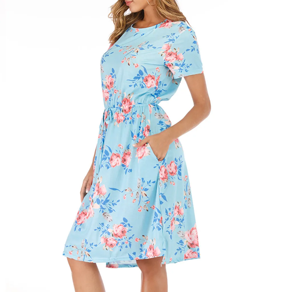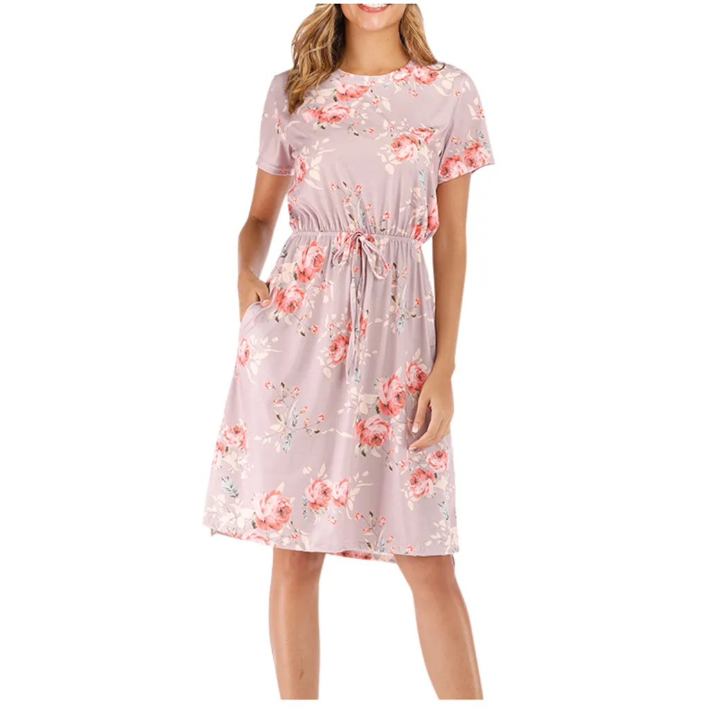 3. Круглый вырез, 3/4Рукав, до середины голениДлина, передняя молния, Узор в горошек и цветочный принт в стиле пэчворк с поясом. Милый и милый, простой, но модный.