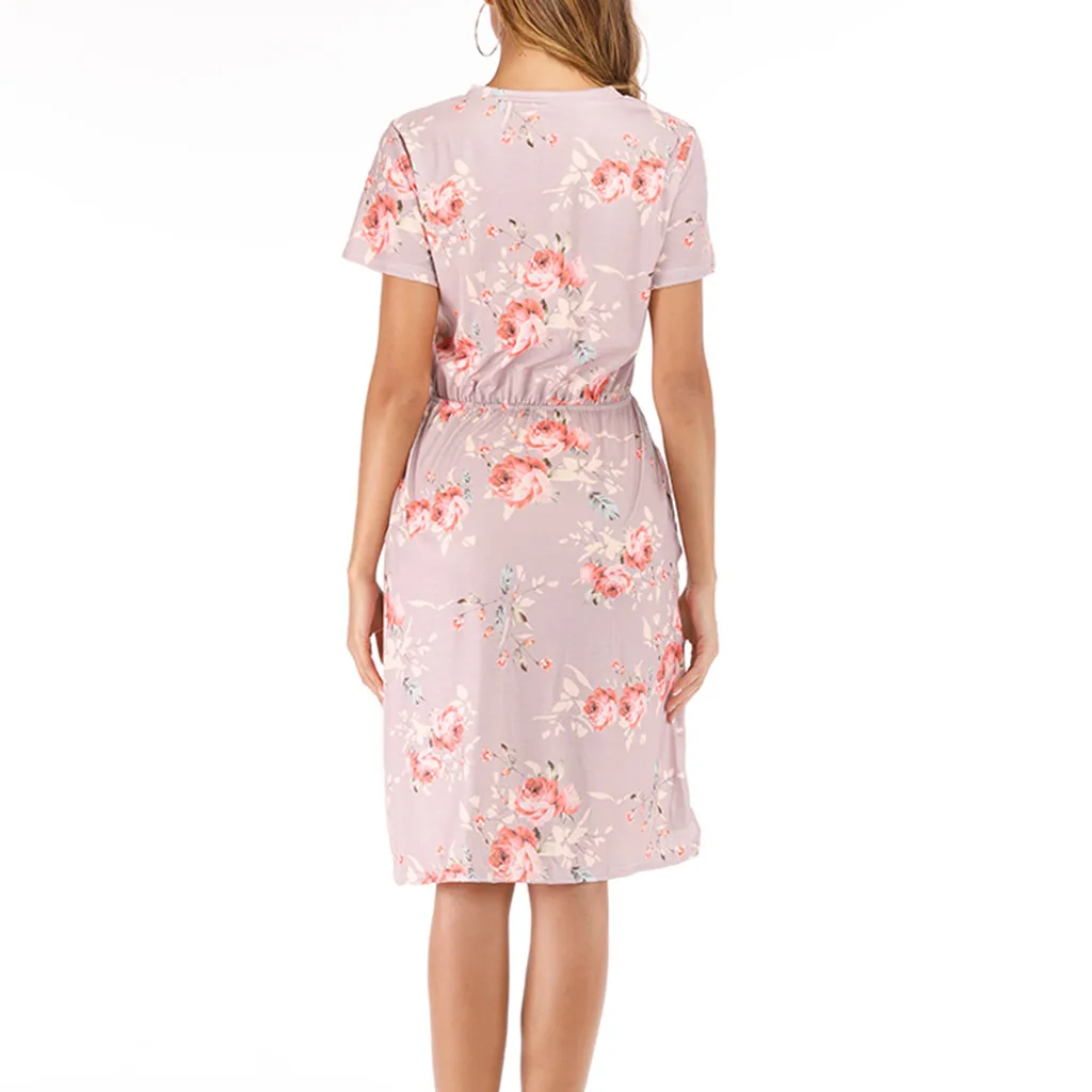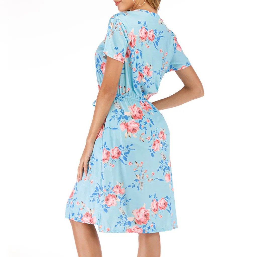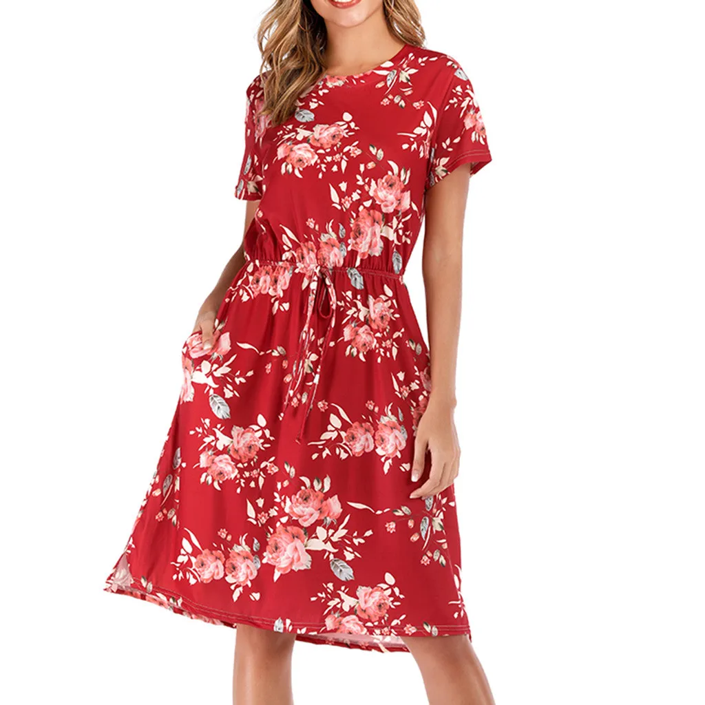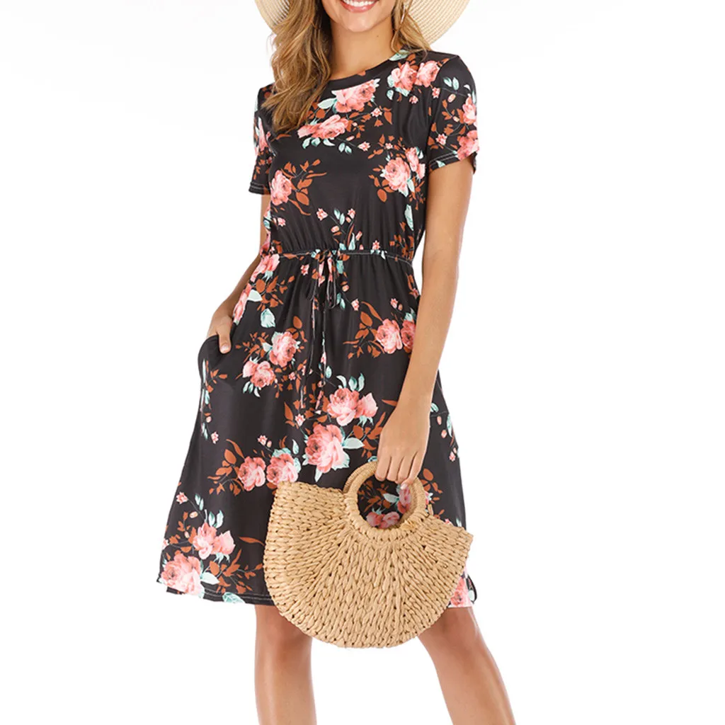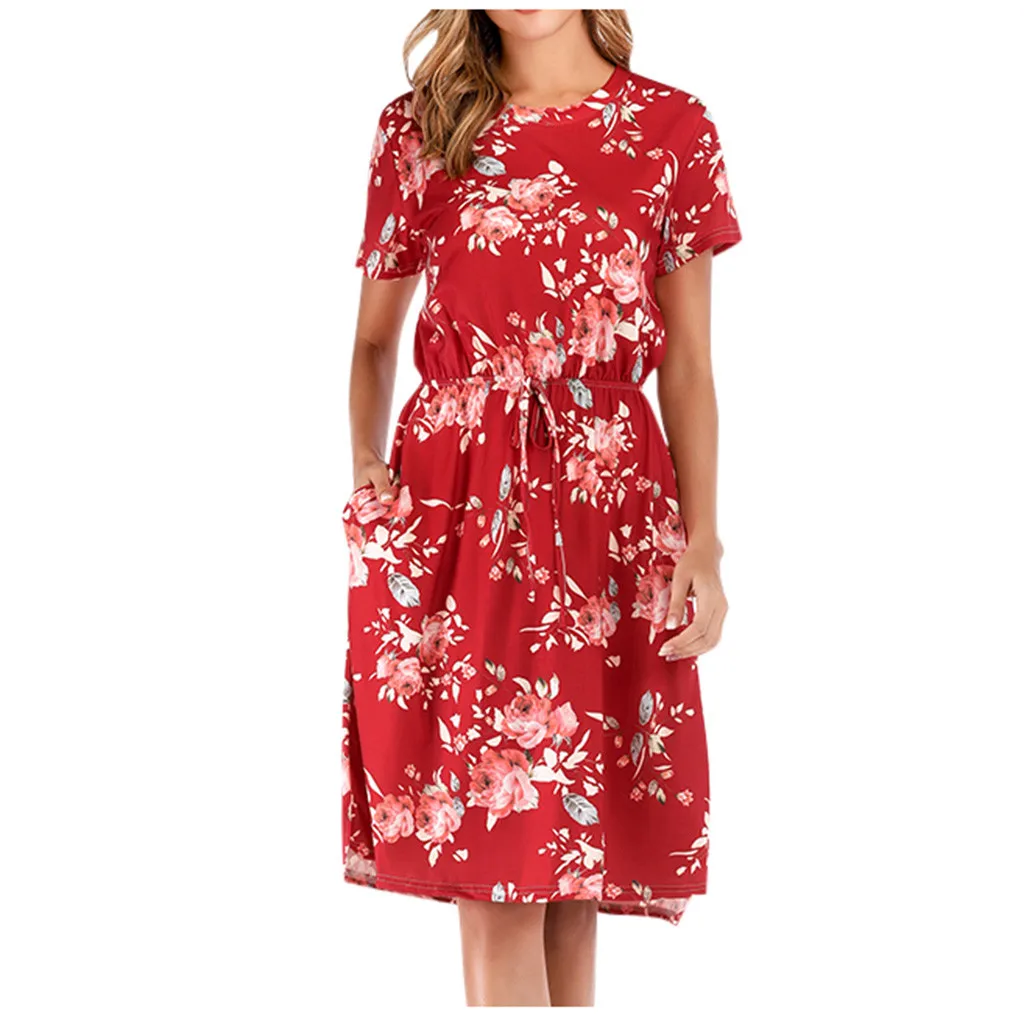 3. Круглый вырез, 3/4Рукав, до середины голениДлина, передняя молния, Узор в горошек и цветочный принт в стиле пэчворк с поясом. Милый и милый, простой, но модный.