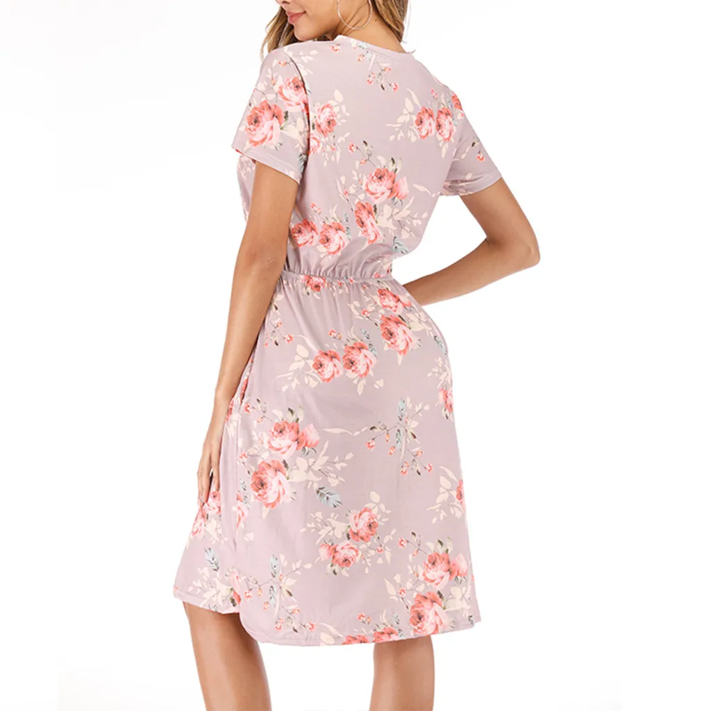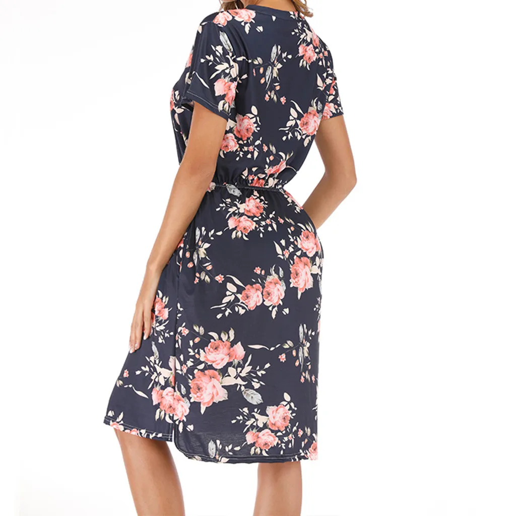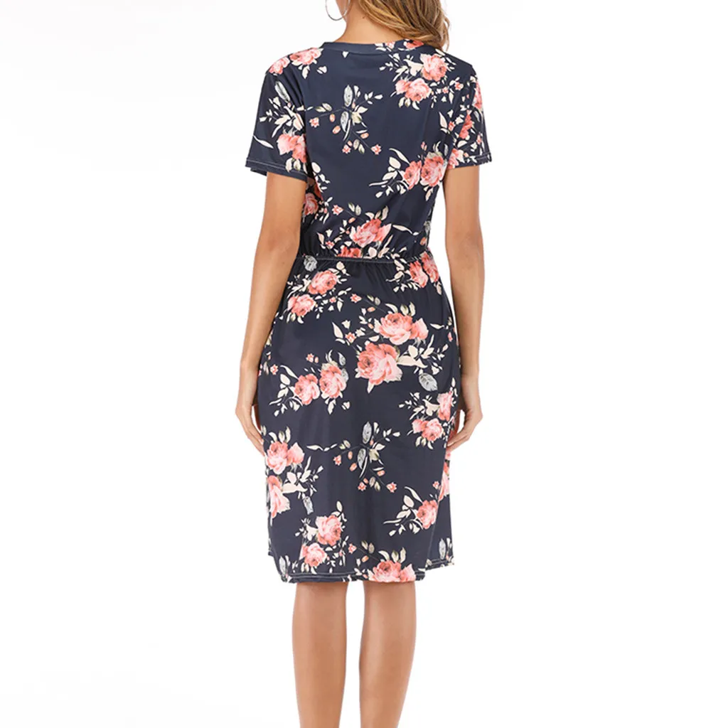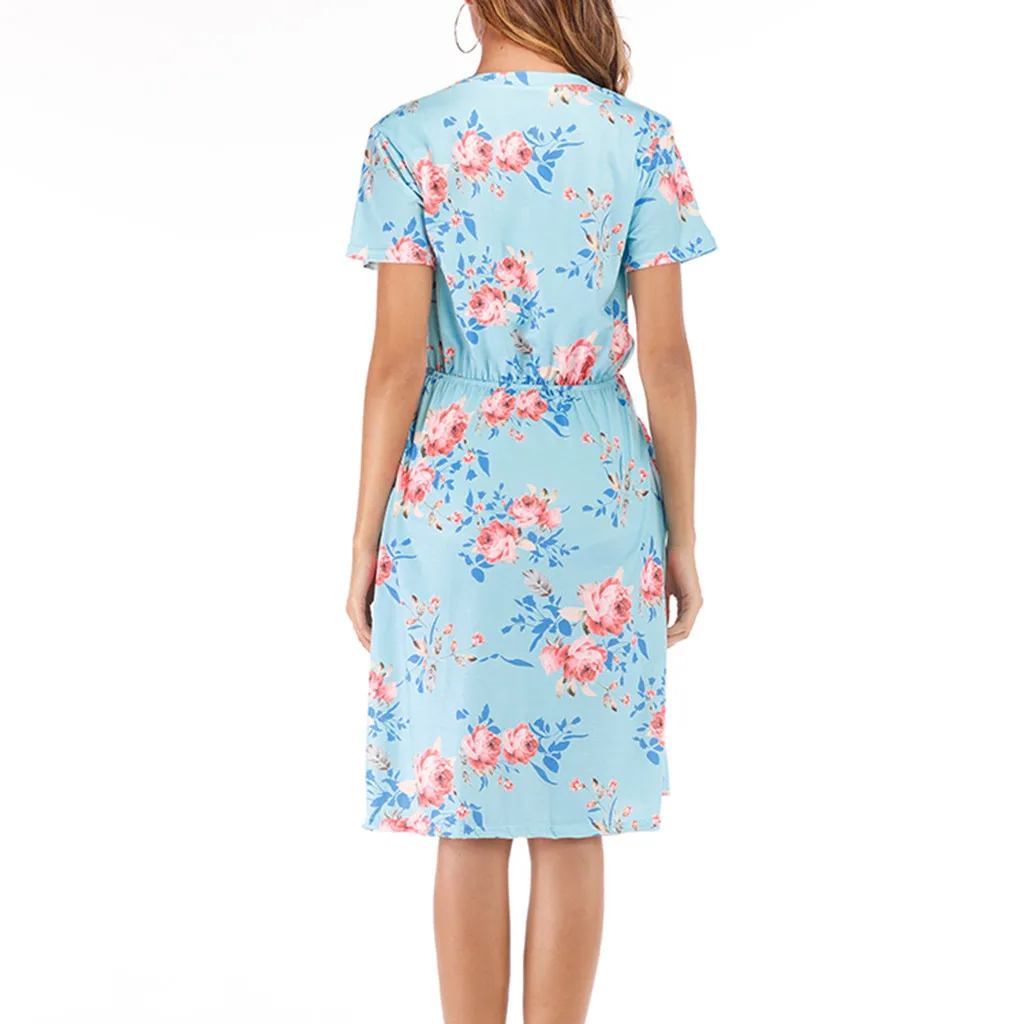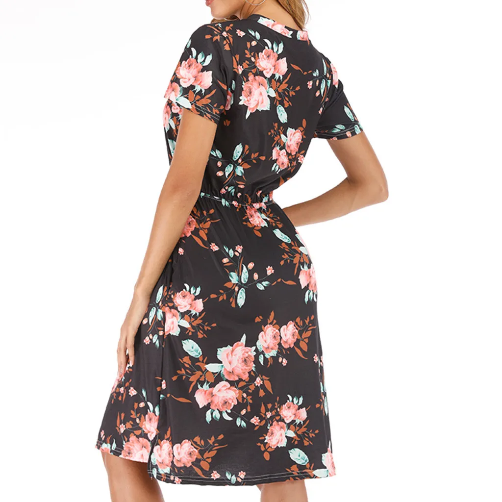 3. Круглый вырез, 3/4Рукав, до середины голениДлина, передняя молния, Узор в горошек и цветочный принт в стиле пэчворк с поясом. Милый и милый, простой, но модный.