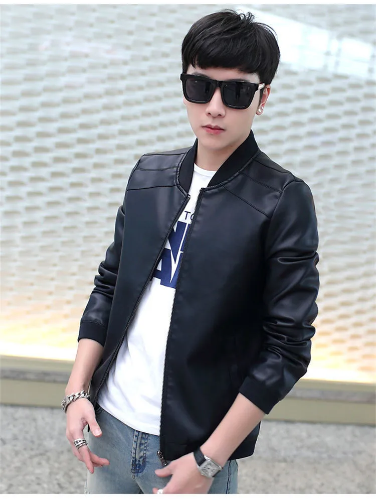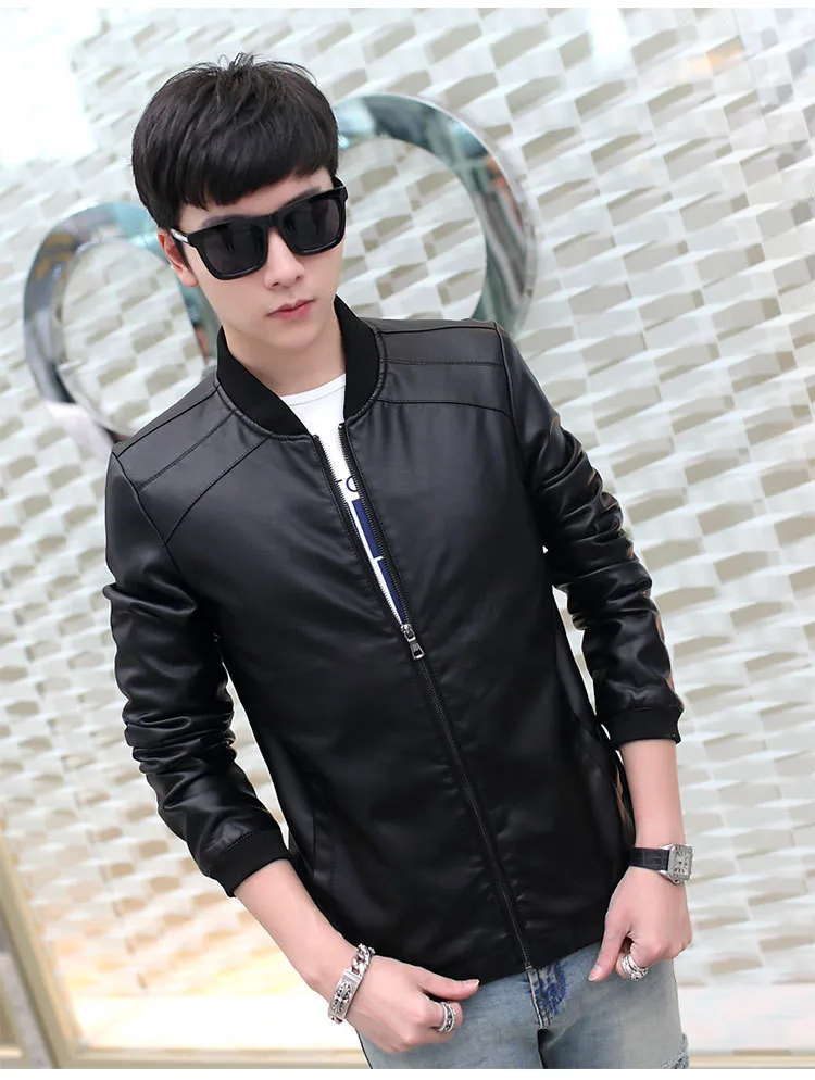 Осенне-зимняя мужская куртка из искусственной кожи на молнии, Повседневная мотоциклетная кожаная куртка, Мужская одежда для отдыха, тонкая кожаная куртка