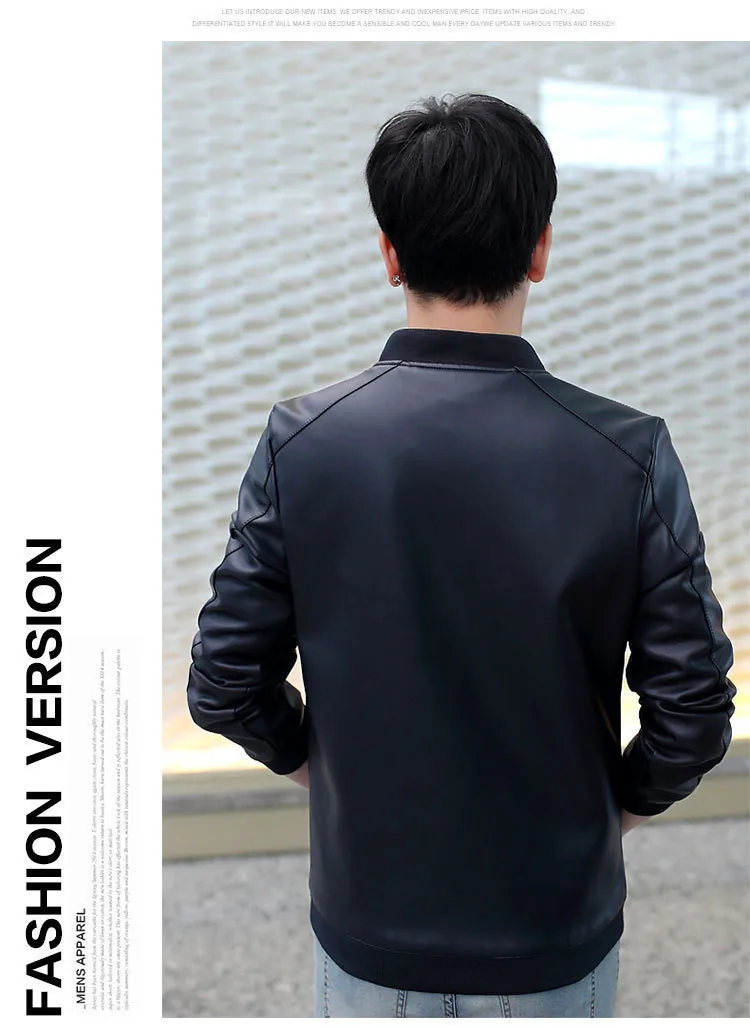 2020 Мужская куртка Новый мотоцикл кожаная куртка 2019 Мода в уличном стиле с воротником-стойкой из искусственной кожи Slim Fit Куртка Повседневная Осеннее пальто