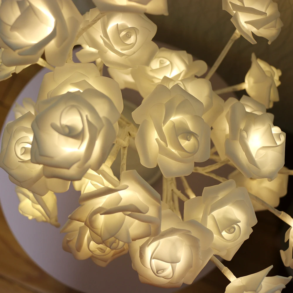 Особенности: Дизайн с розами, красивый и нежный. Теплая яркость. Энергосбережение и длительный срок службы. Экологически чистый материал, не легко нагреваться. Подходит для дома, улицы, отеля, улицы, свадьбы, праздника, вечерние, бара, окна магазина и т. д. Идеально подходит для подарка на День святого Валентина.