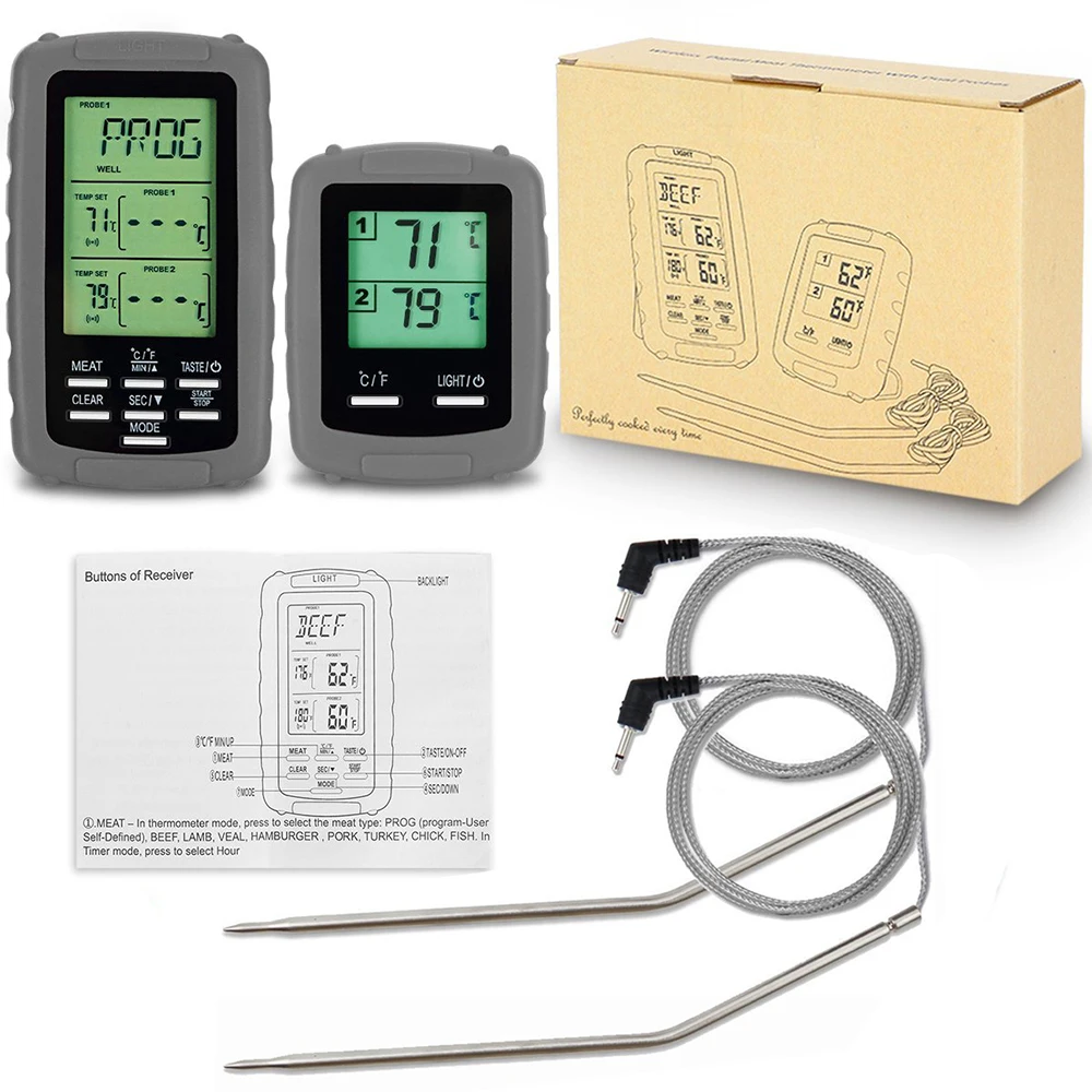 Беспроводной термометр для мяса, термометр для барбекю, термометр для барбекю, термометр для гриля, цифровой термометр с двойным зондом