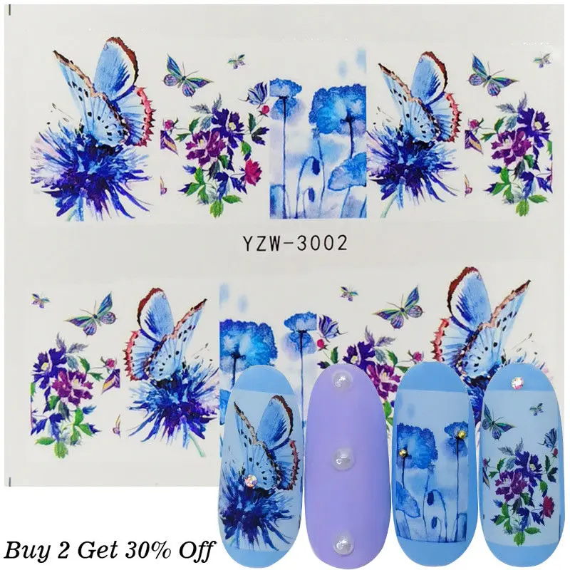 1pcs Nail Art Water Decals Butterfly Flower Blue Designs for Women Full Cover Sticker Decor Watermark Slider Summer Tips | Красота и
