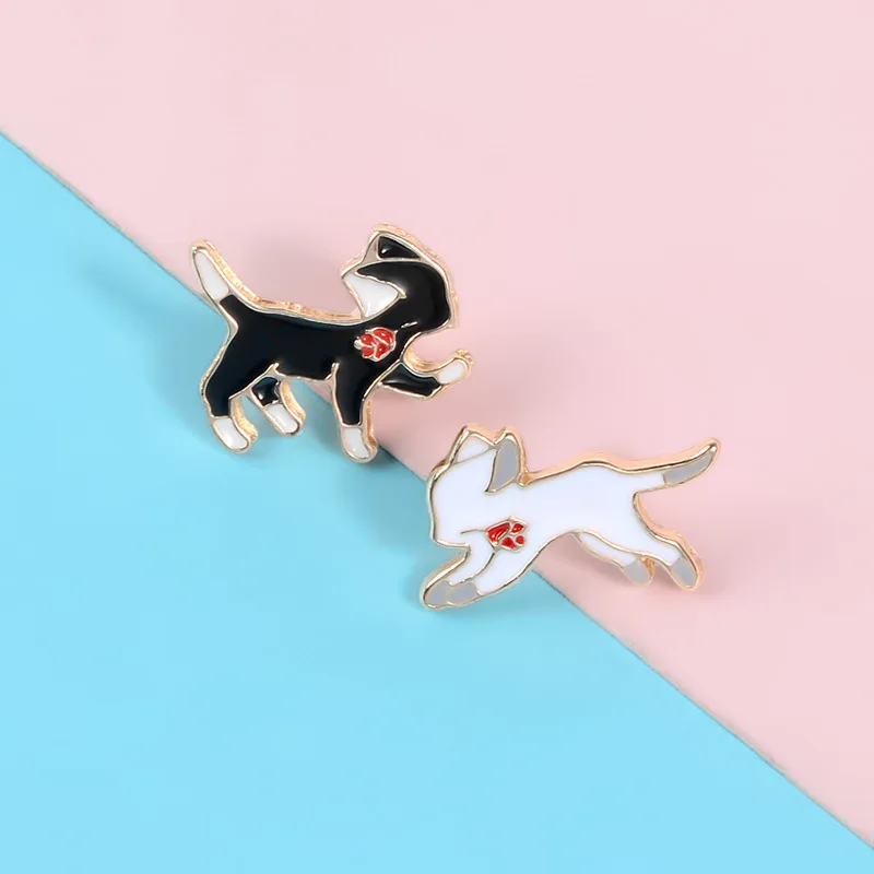 Милые значки с героями мультфильмов, черные белые толстые броши-кошки для женщин, забавные эмалированные булавки, ювелирные изделия с животными, джинсовые куртки, значок воротника