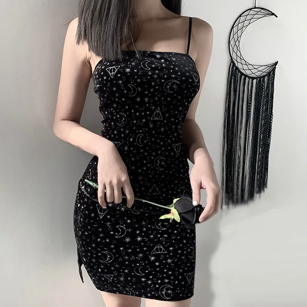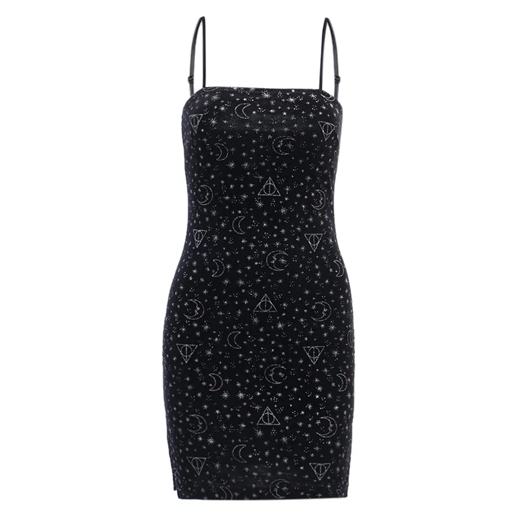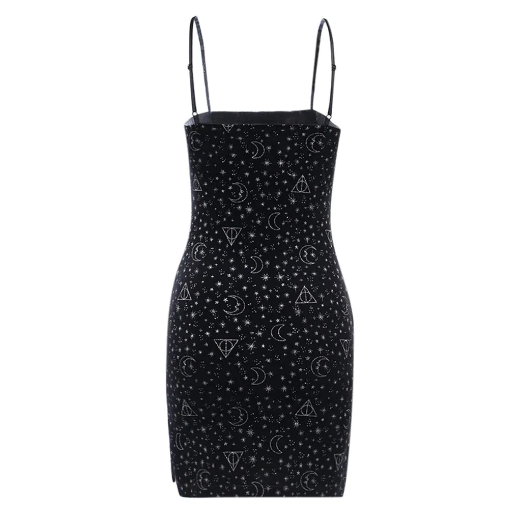 Женское облегающее мини-платье со звездами без рукавов