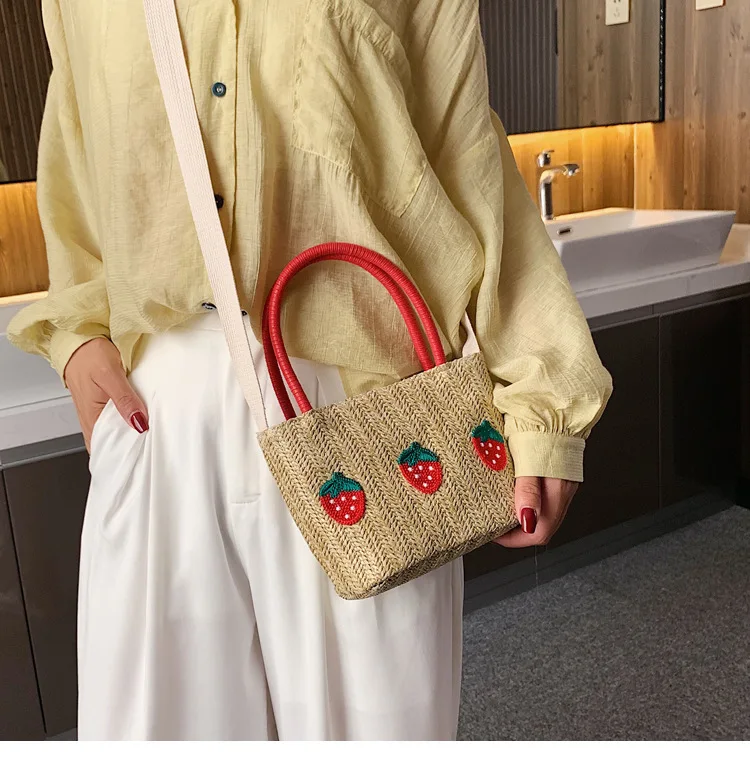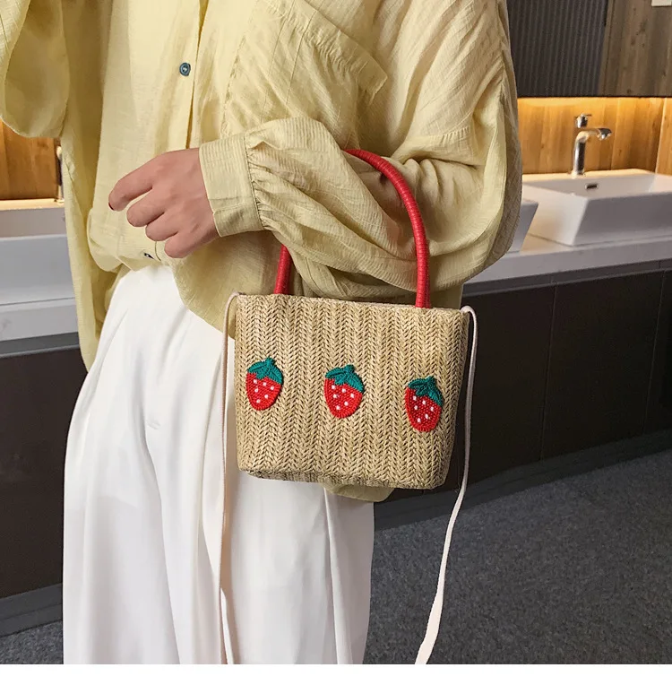 2020 летняя новая модная богемная соломенная сумка ручной работы тканая сумка Пляжная Сумка японская вишневая Клубничная Наплечная Сумка