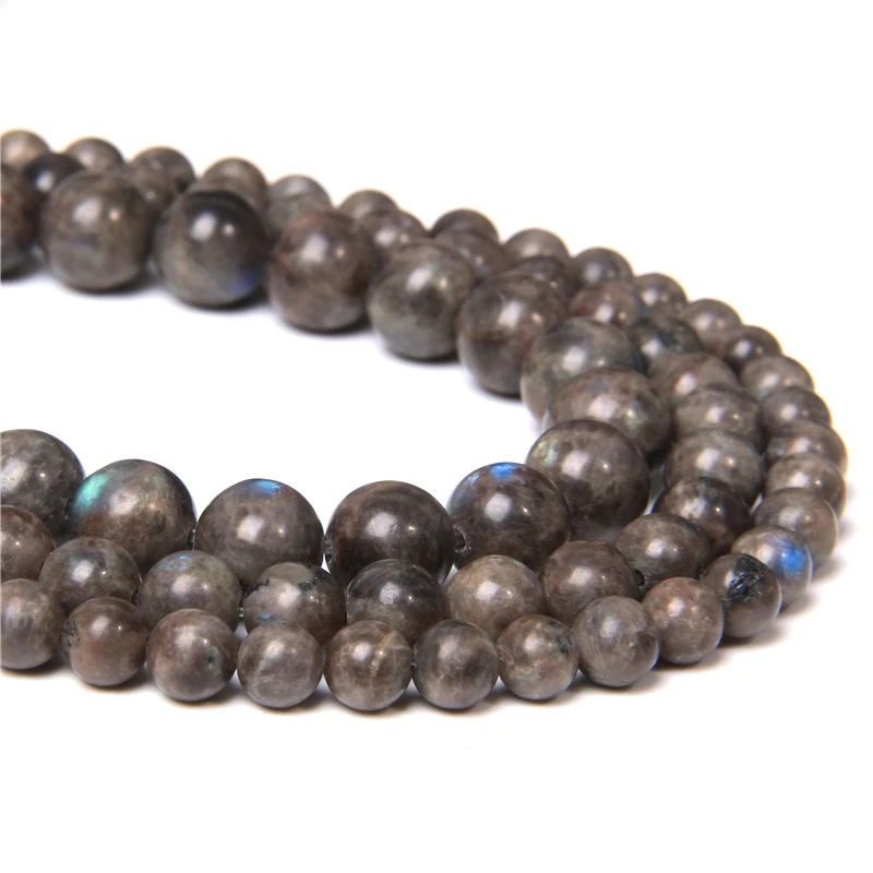 Натуральный кофейный цвет, бусины из лабрадорита |