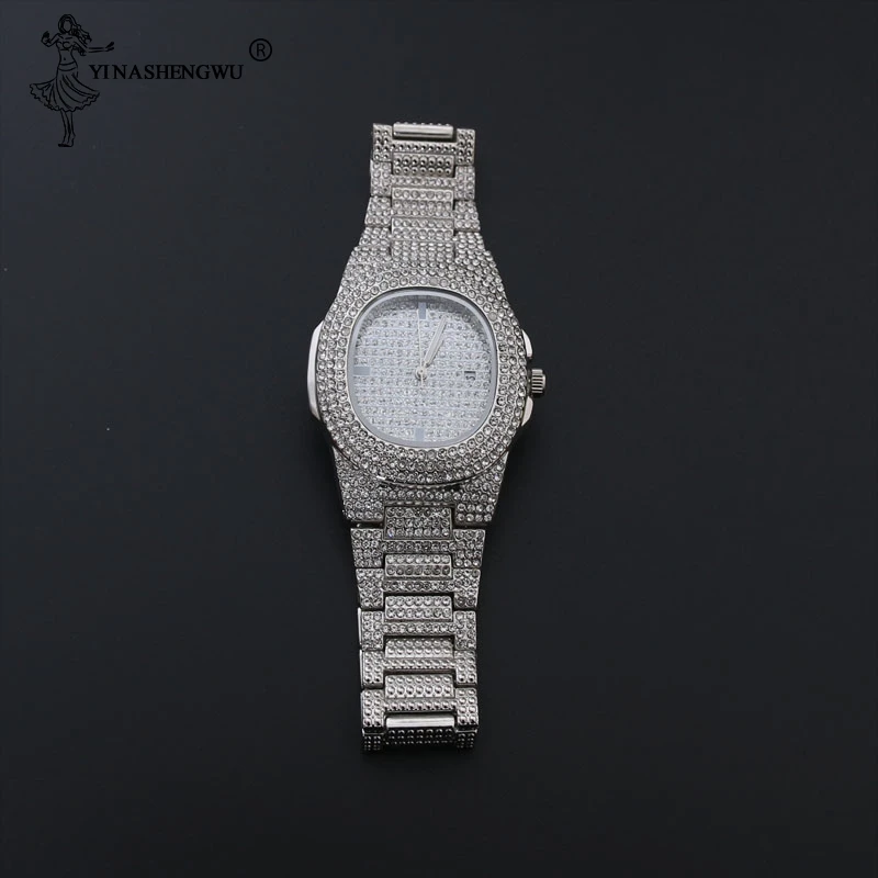 Роскошные золотые серебряные мужские часы & ожерелье & Кулон & браслет & кольцо комбо набор Льдом Из хип-хоп золотое ожерелье кубинская цепочка для мужчин