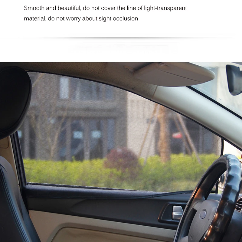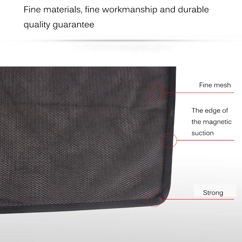 The magnetic car sun shade adopts mesh fabric material, which is breathable. It can help to stop the hot sunlight and will not stop the fresh air at the same time, when the car window is opened.