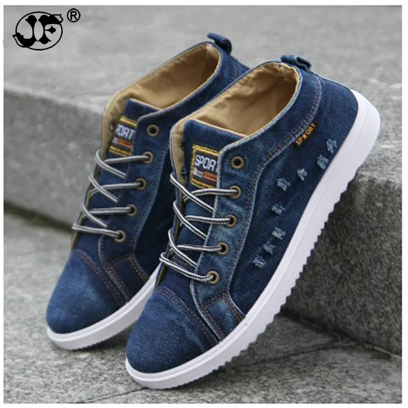Модная ВИНТАЖНАЯ ДЖИНСОВАЯ парусиновая обувь в британском стиле; Мужские повседневные ботильоны с высоким берцем; Обувь на плоской подошве; Обычная школьная обувь для мальчиков; 78