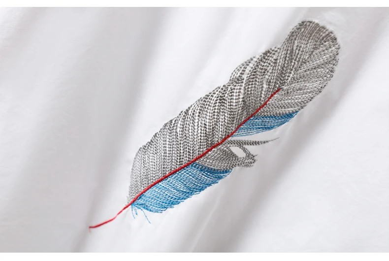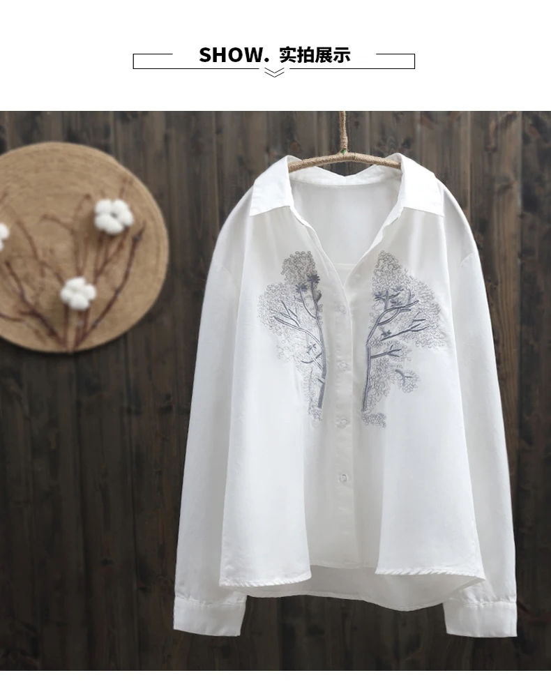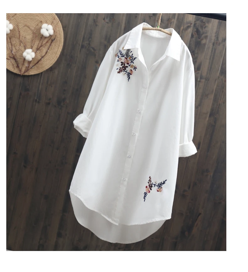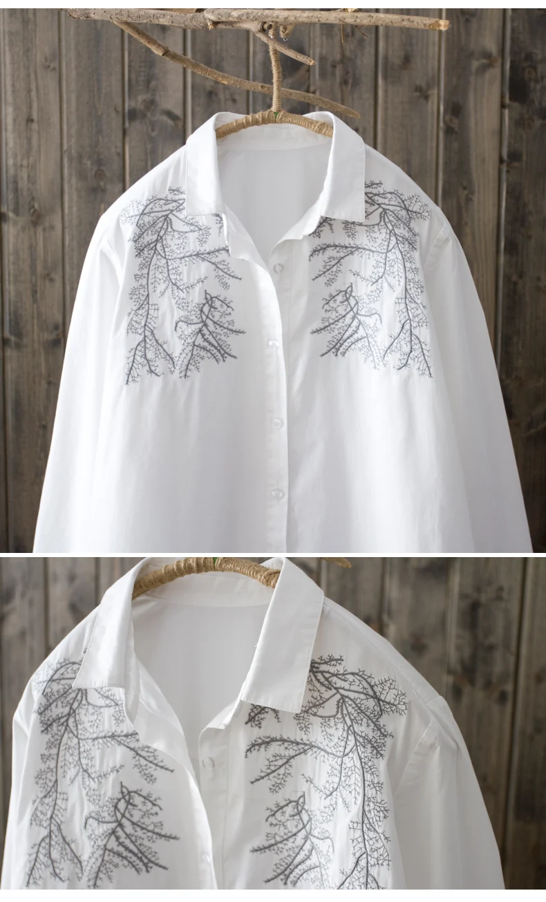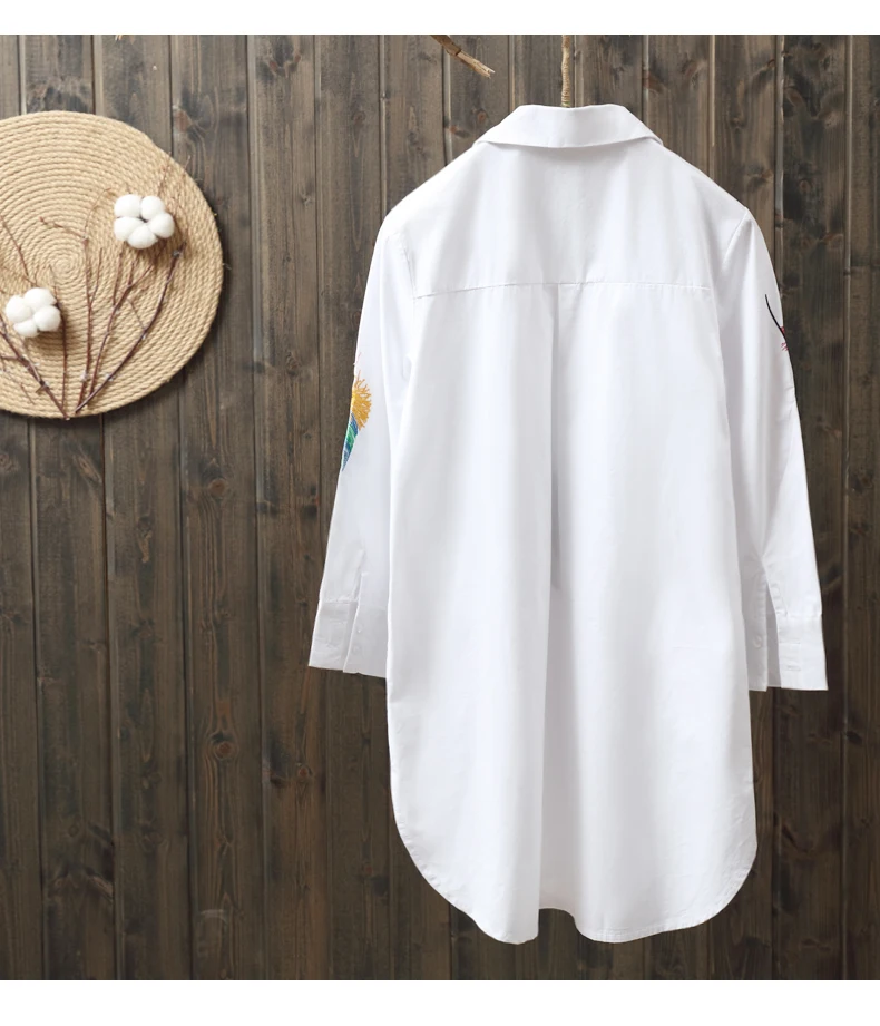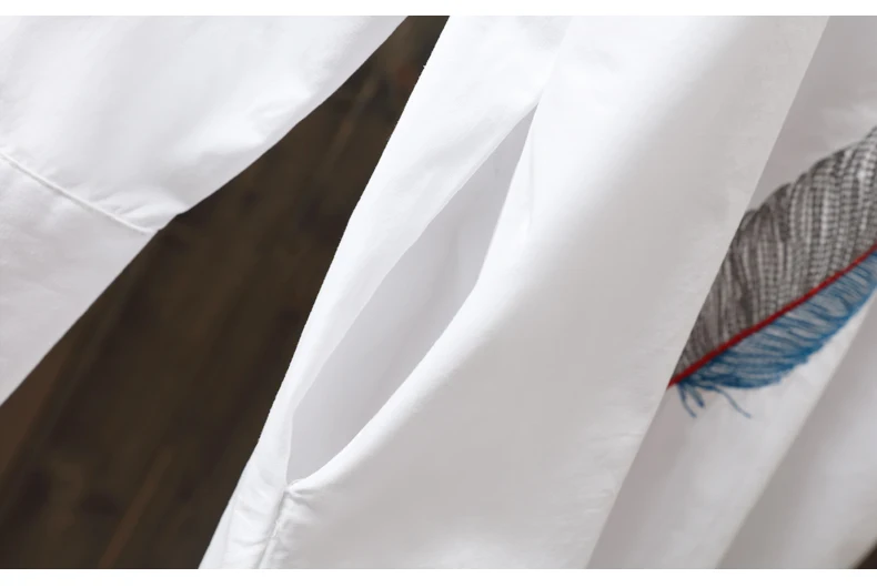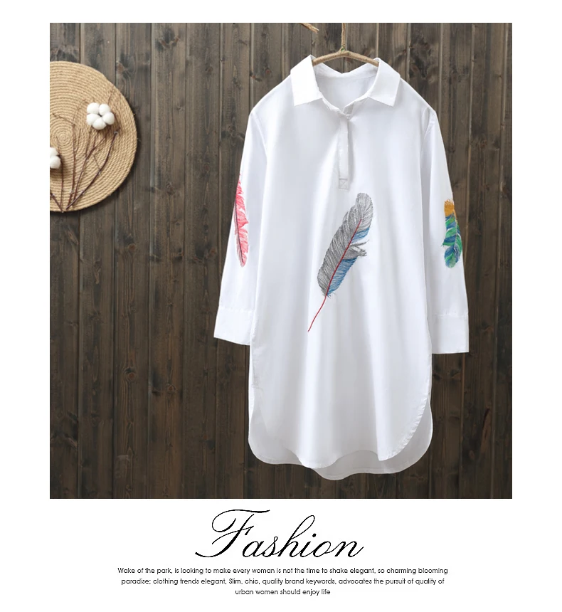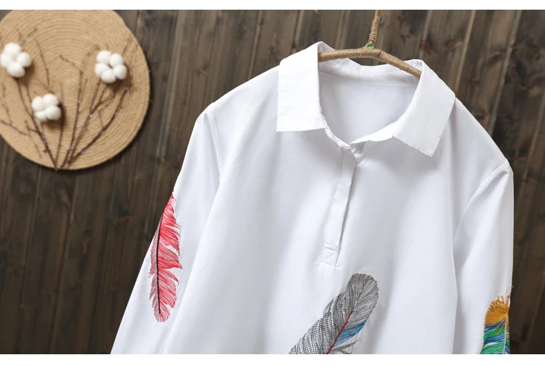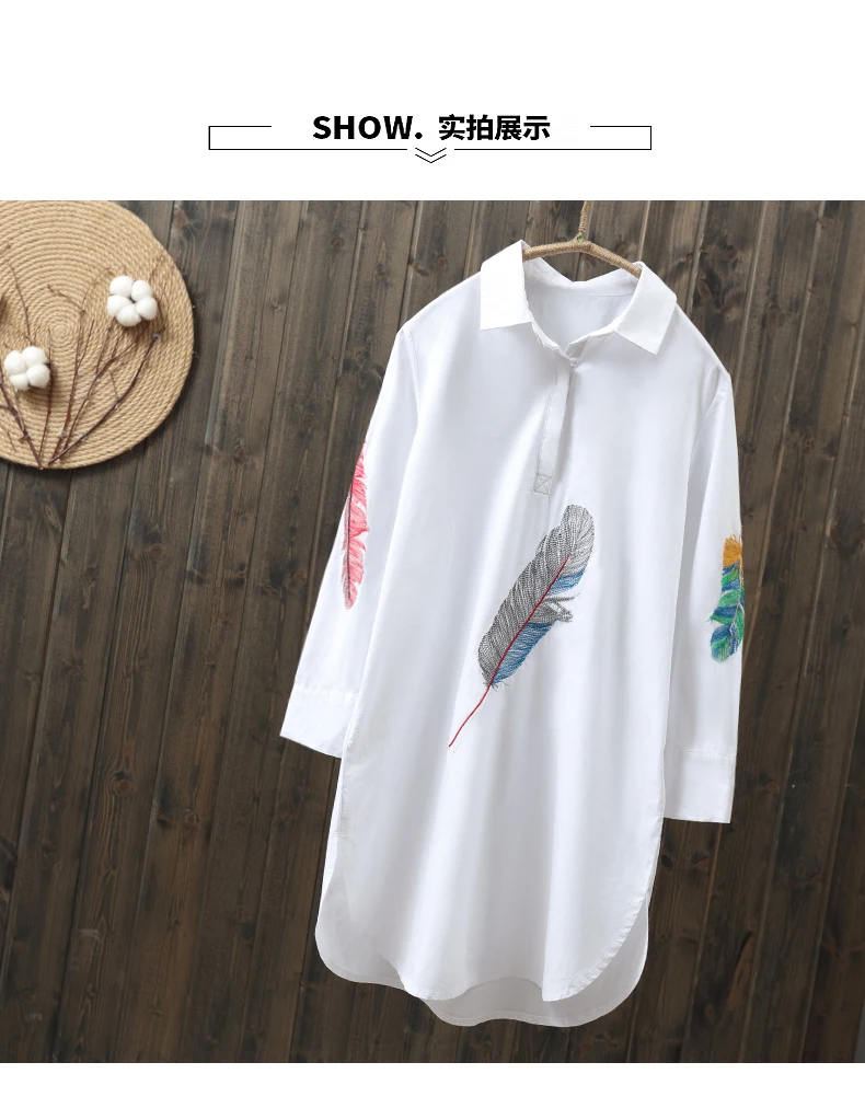 100% хлопок, женская блузка, рубашка, вышивка перьями, белая длинная блузка для женщин, 3/4 рукав, искусство, свободные, для девушек, для офиса, топы, рубашки