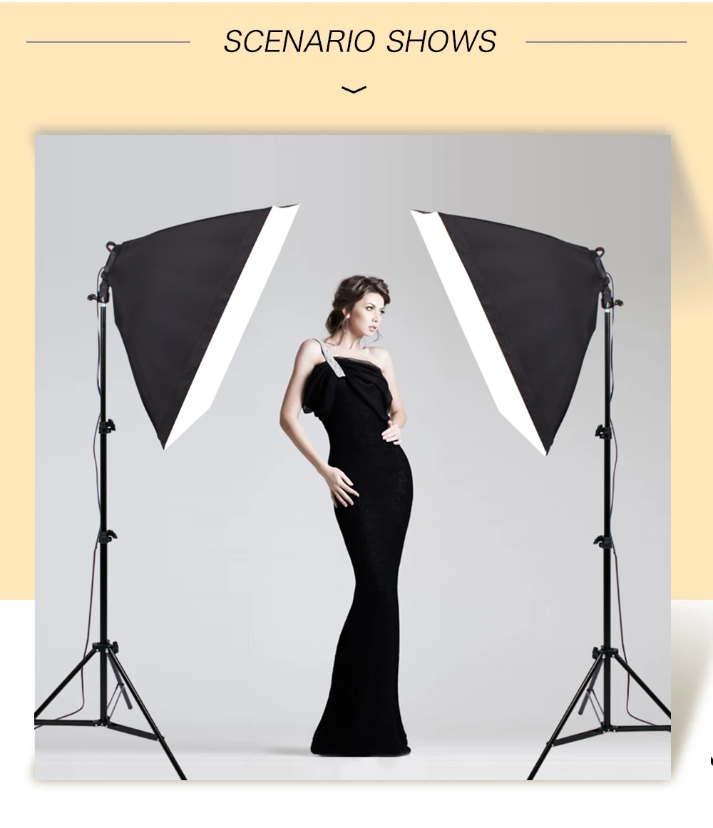 50CMx70CM softbox:White foldable soft cloth,High quality reflective particle.Safe and non-toxic polyester fiber,4 flexible connecting rods.