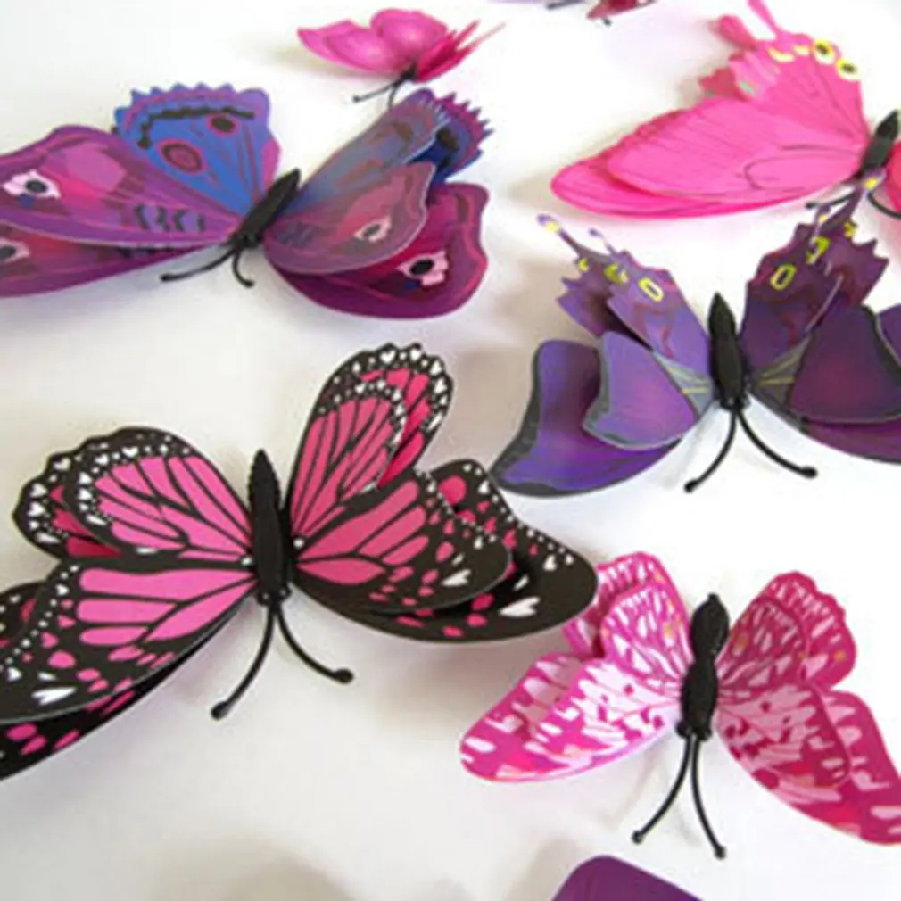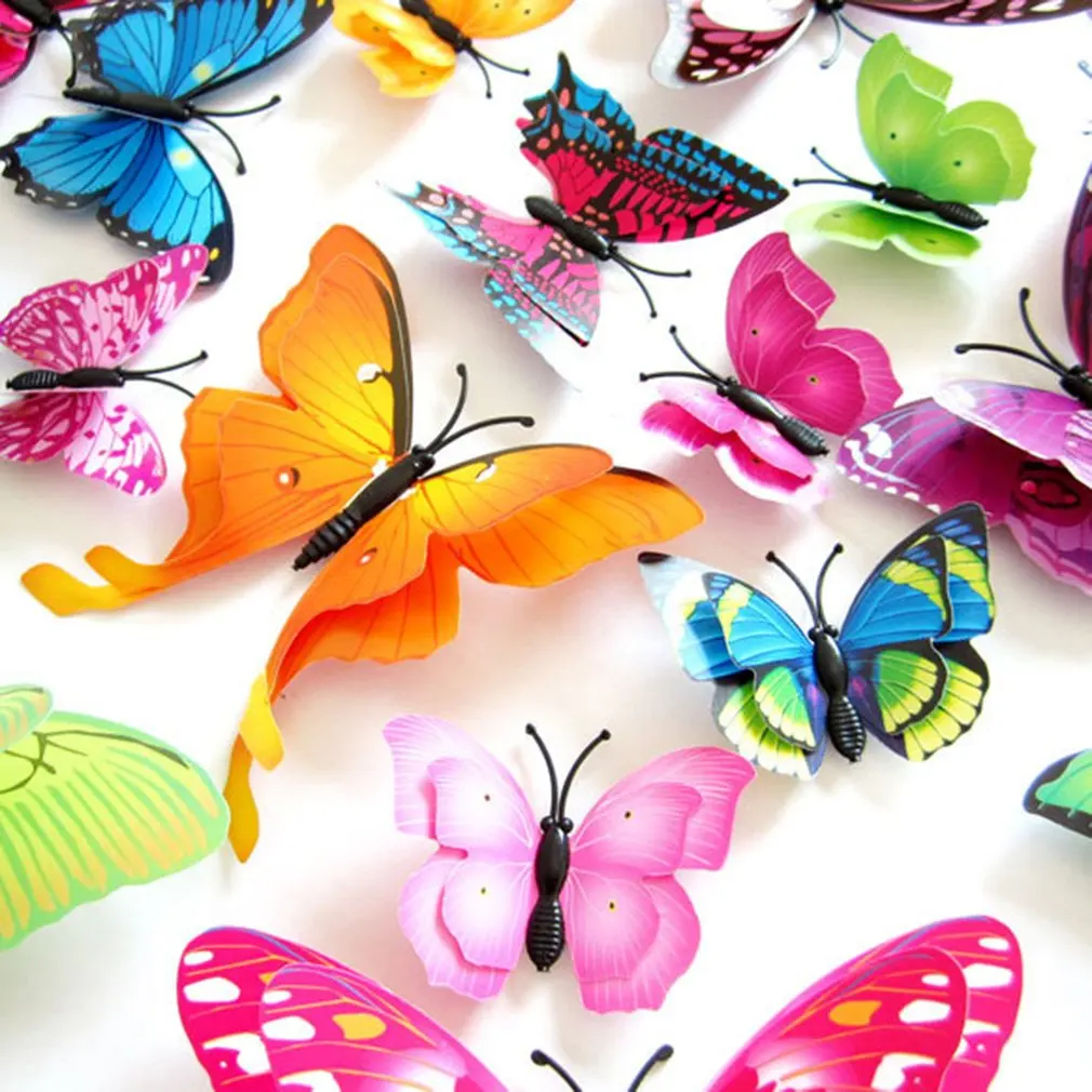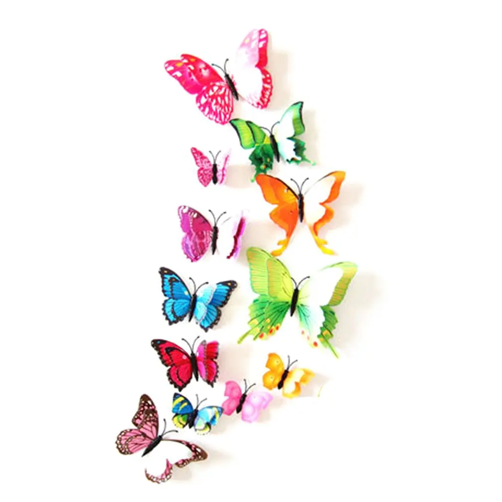 12 шт./компл. x 3D трехмерный ПВХ Материал Моделирование украшения для дома бабочки наклейки на стену магнит двойной слой