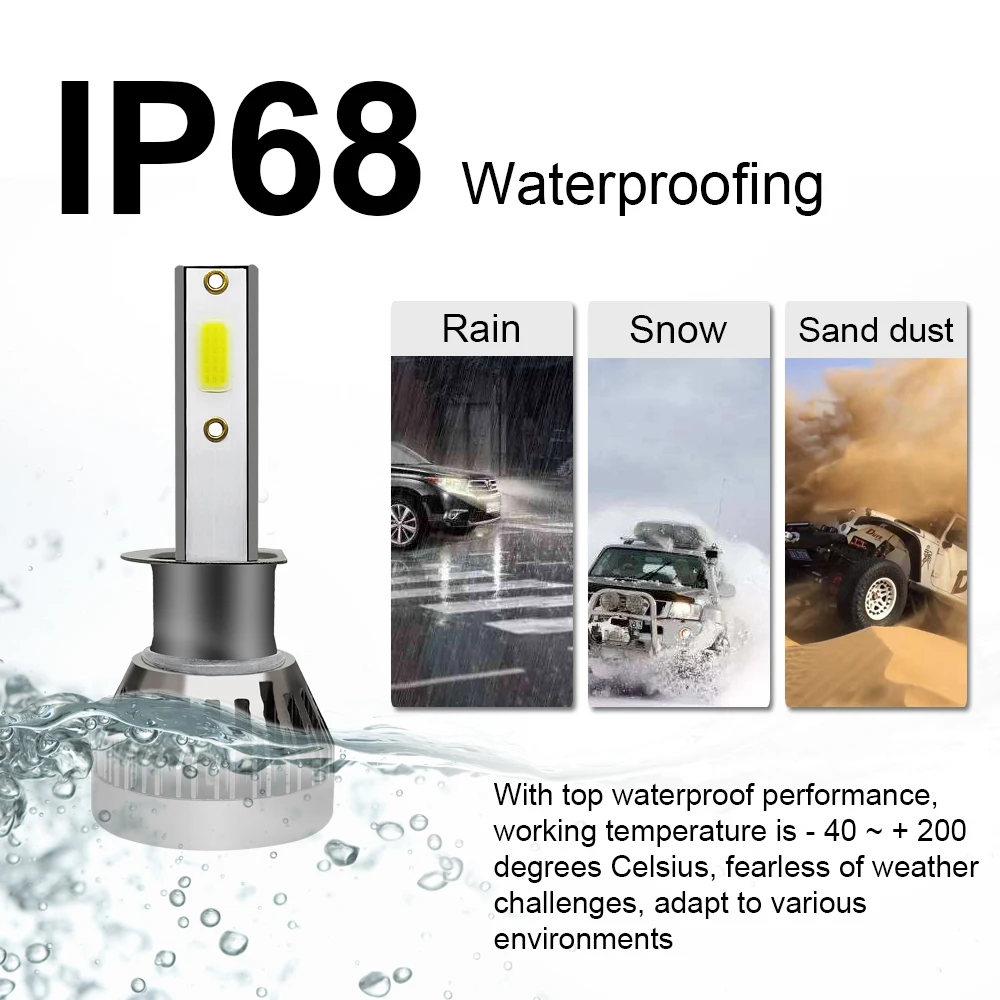 Brand: ADT/autodragons Product name: 2020 Mini COB Headlight Product type: LED Headlight Model: Mini COB headlight LED chip: COB led chip Voltage: DC9V-36V Power: 36W/PCS 72W/SET Color temperature: 6000K White Lumen: 6000Lumens Car model: Universal Single Beam: H1 H7 9005 9006 H8 H10 H11 9012 High low Beam: H4 Feature: Without Fan, All in one Beam Angle: 360° Material: Aviation aluminum 6063 Usage: Upgrade for Car, Truck, SUV, RV HID Xenon Waterproof level: IP68 Warranty: 12 months