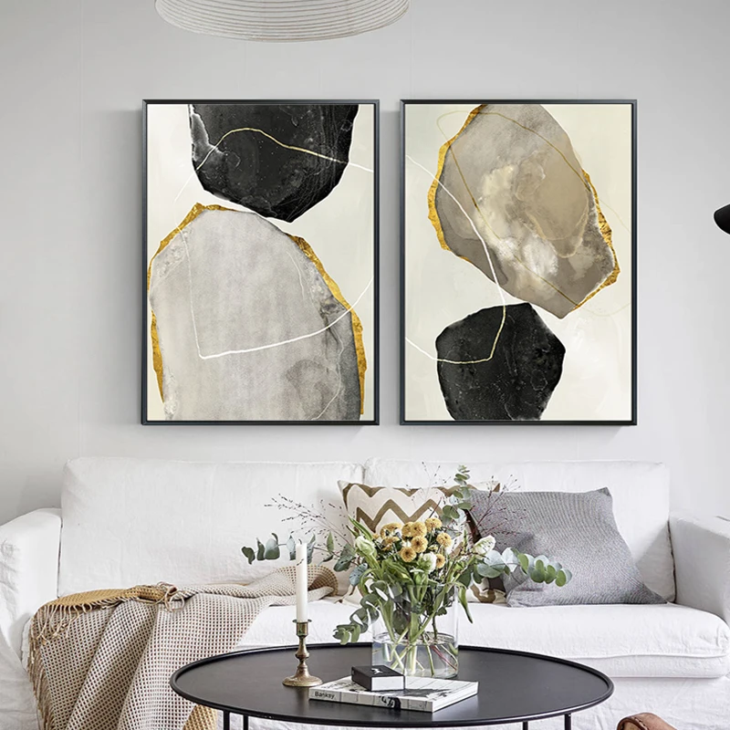 Современный скандинавский золотой Холст, картина и печать, плакат для гостиной, настенное искусство, черно-белое украшение, спальня, домашний декор