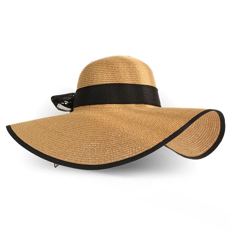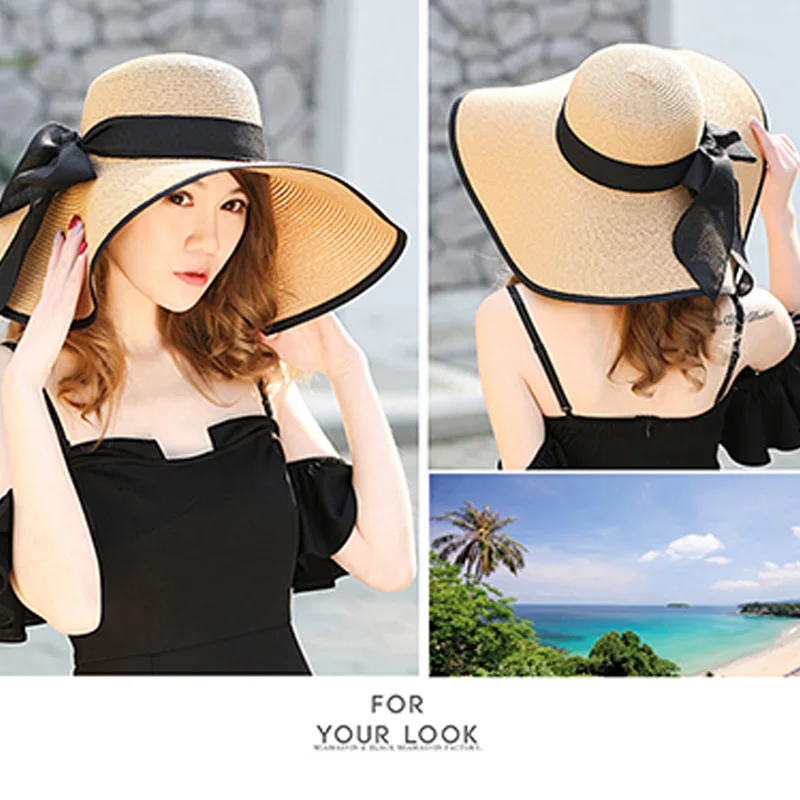 Летняя соломенная широкополая шляпа с широкими полями Пляжная складная бантом