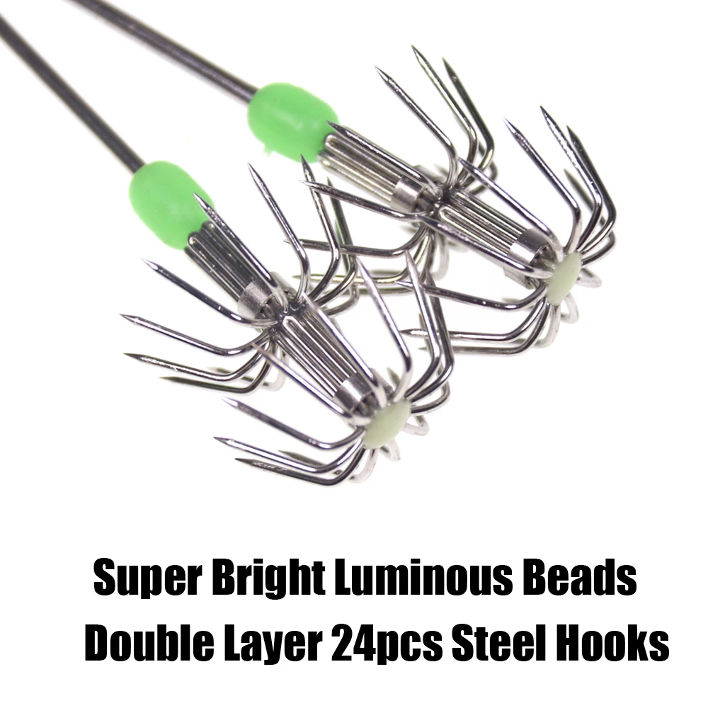 Saltwater Glowing Jig Fishing Tackle 15cm Stainless Steel Double Layers Umbrella Squid Hook Cuttlefish Lure Bait Hook