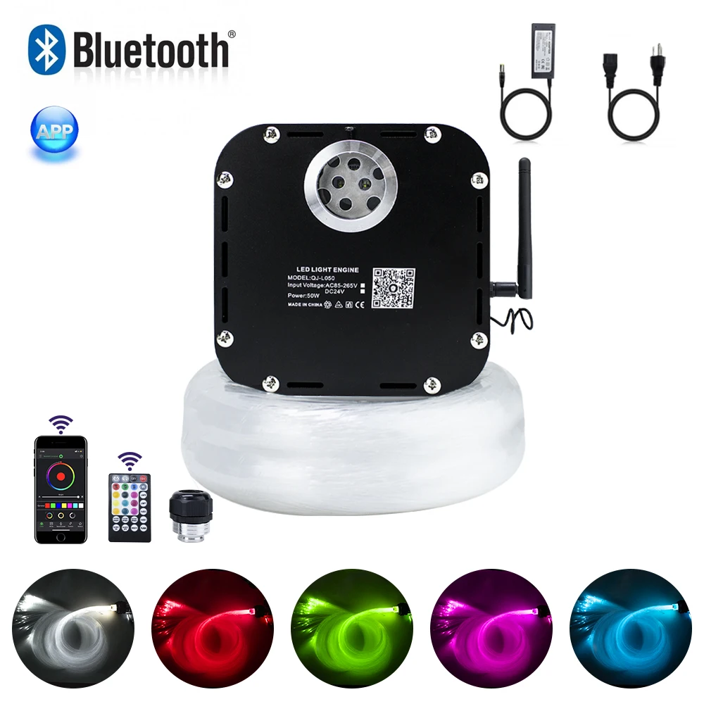 Светодиодный 4-скоростной мерцающий волоконно-оптический светильник, 50 Вт, RGBW, Bluetooth, музыка, Радиочастотный пульт, 4 метра, 400 нитей, кабель смешанного размера со звездой и потолком
