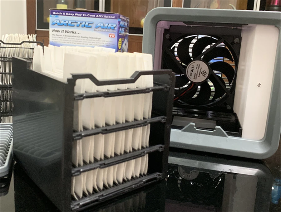 Тип: мини вентилятор охлаждения нового поколения Цвет: белый, черный, Модернизированная фильтровальная бумага Зарядка: usb зарядка Объем воздуха: 50CFM Интерфейс питания USB: 5V'2.1A Встроенный резервуар для воды 375 мл, после заполнения, может работать 8 часов Источник питания USB напрямую или использовать ток переменного тока, Длина usb-кабеля: 150 см Особенности: 1. Скорость ветра третьей передачи может регулироваться 2 небольших размера, быстрое охлаждение 3. Быстрое охлаждение, очищение и увлажнение 4. Энергосбережение, низкий децибел сна 5. Эффективно блокирует большие частицы пыли в воздухе, Пыль, бактерии, микроорганизмы и т. Д., более чистый воздух 6. Область применения: офис, спальня, гостиная, кабинет и т. Д. Упаковка 1: 1. Вентилятор охлаждения: хост * 1 + 1,5 м кабель USB * 1 (за исключением конверсионная вилка) Упаковка 2: Фильтровальная бумага: необходимо использовать с охладителем Функция 1. Благодаря функции три в одном охлаждения, увлажнения и очистки воздуха скорость ветра может регулироваться тремя скоростями. Функция «Три в одном» охлаждения, увлажнения и очистки воздуха может регулироваться тремя скоростями. 2. Встроенный светодиодный светильник 7 цветов может использоваться в качестве ночного сна. Ночник-светильник 3. Тихий во время использования, Холодильный и экологически чистый без фреона 4. Место использования: офис, домашняя гостиная, кухня, спальня, ванная комната и строительство дома и т. Д. Советы: Этот охлаждающий вентилятор должен использоваться с фильтровальной бумагой. Лучше заменять фильтровальную бумагу каждые два месяца.