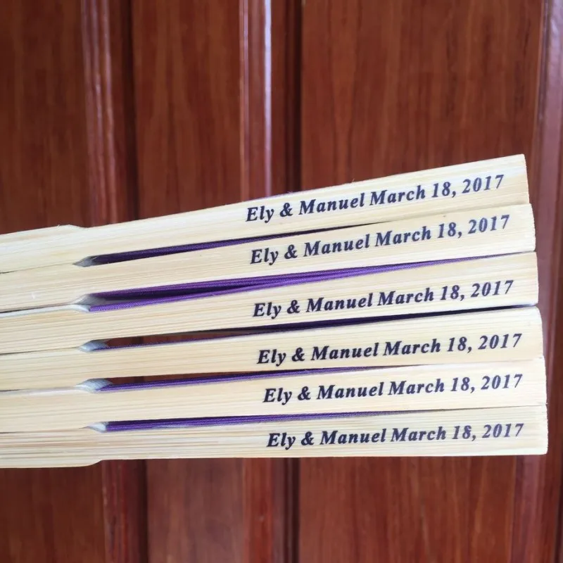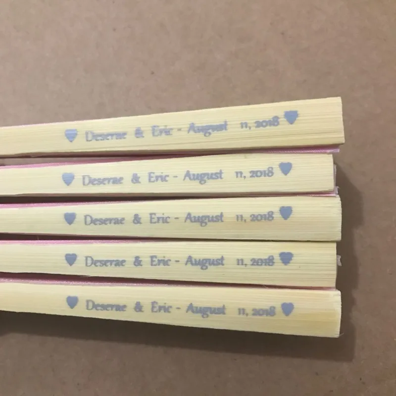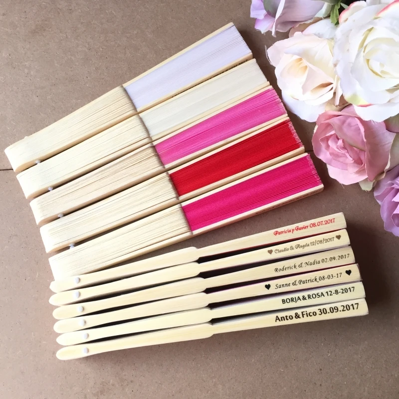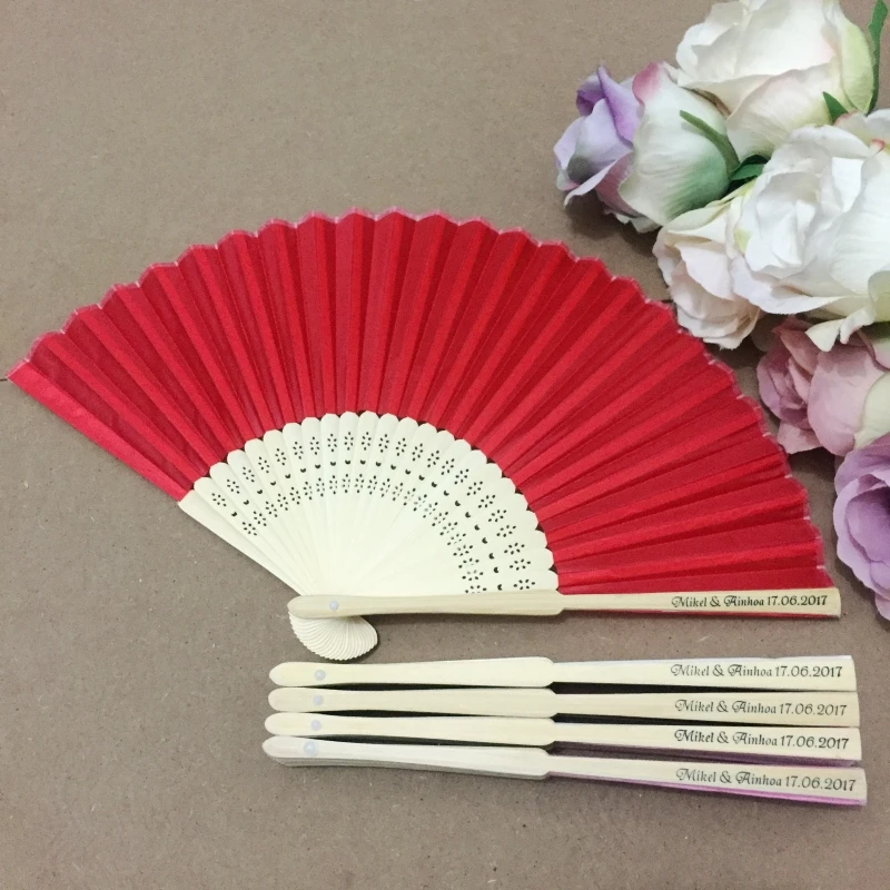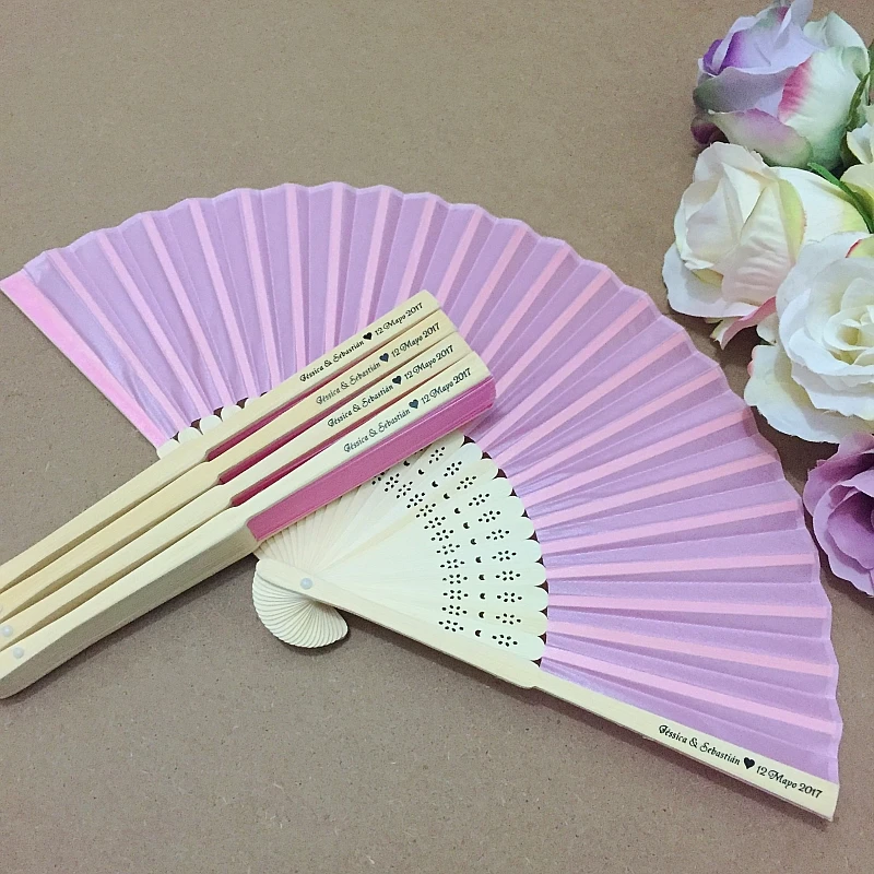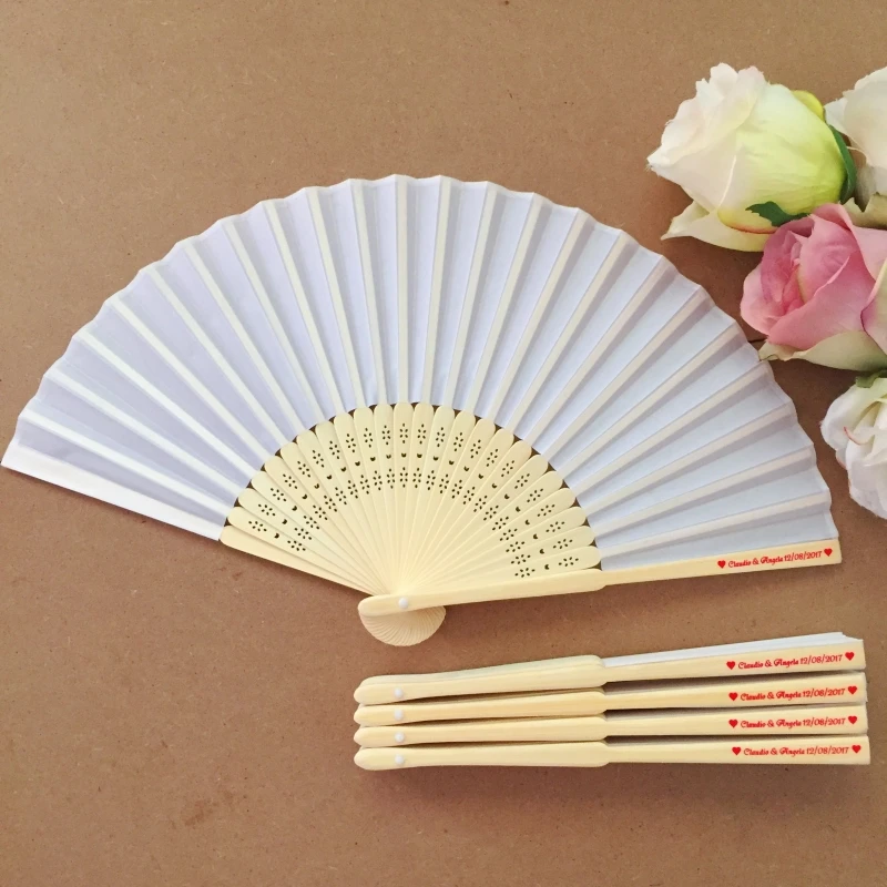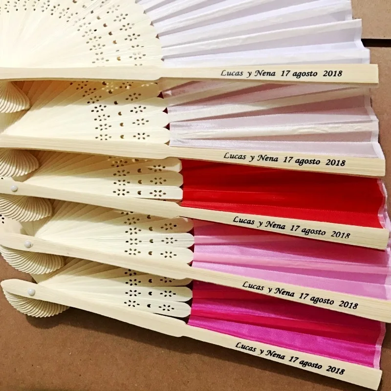 Товар: индивидуальный Шелковый свадебный ручной вентилятор Материал: бамбуковые ребрышки + Искусственный Шелковый тканевый чехол Размер: длина 21 см стандартный, открытый ширина около 38 см Дизайн: бамбуковые ребрышки в БАМБУКОВОМ натуральном цвете с перфорацией; Искусственный Шелковый веер из ткани покрыт сплошным цветом, с персонализированной печатью текста на одной стороне бокового ребра. Цвет вентилятора: белый, бежевый, розовый, ярко-розовый и красный 5 цветов, пожалуйста, выберите при размещении заказа. Примечания: когда вы размещаете заказ для персонализированных фанатов, пожалуйста, выберите цвет вентилятора и напишите текст печати, цвет печати и выберите тип печати на следующем рисунке, как Примечания: 1. Текст печати: пожалуйста, при размещении заказа укажите персональный текст печати в качестве Примечания. 2. Цвет печати: обычный цвет печати-черный, но есть и другие цвета, такие как красный, зеленый, синий, коричневый, серый, фиолетовый и золотой цвета. 3. Шрифт для печати: Выберите тип печати на следующем рисунке: