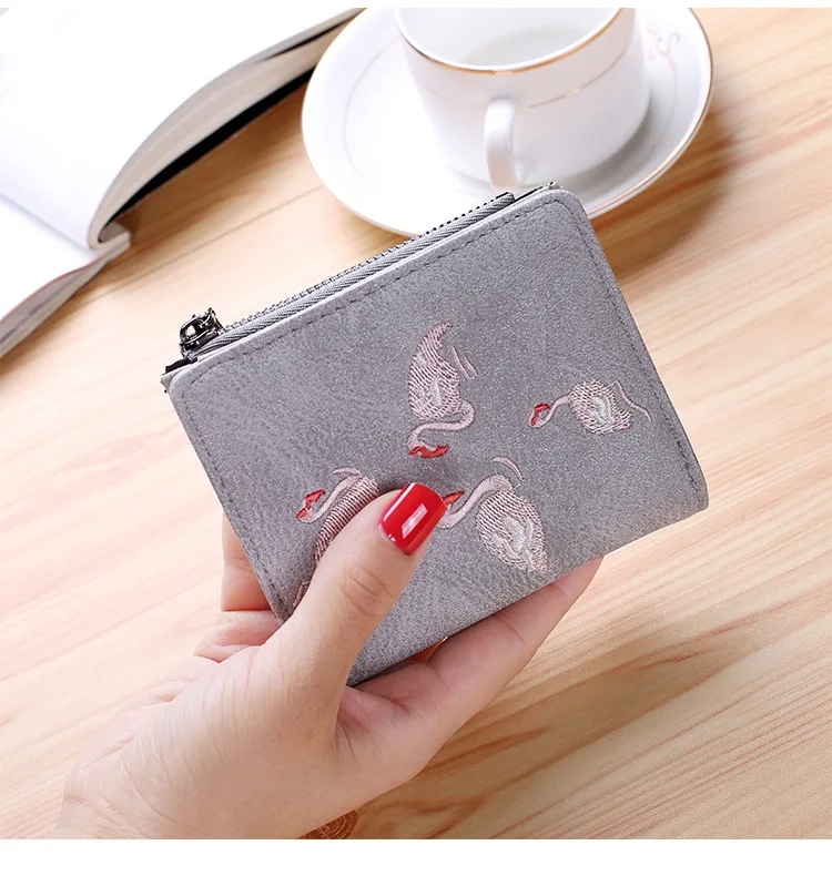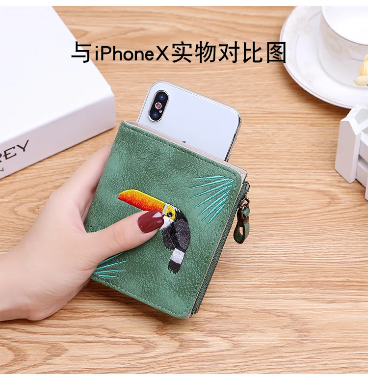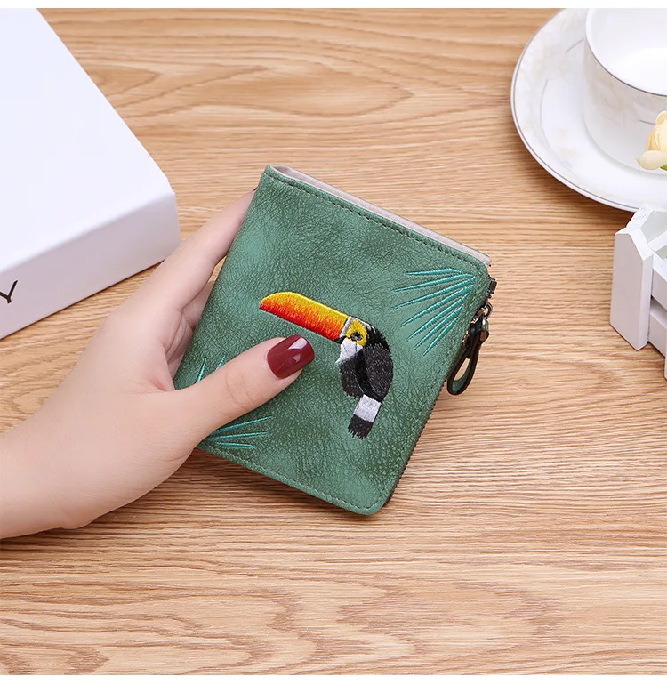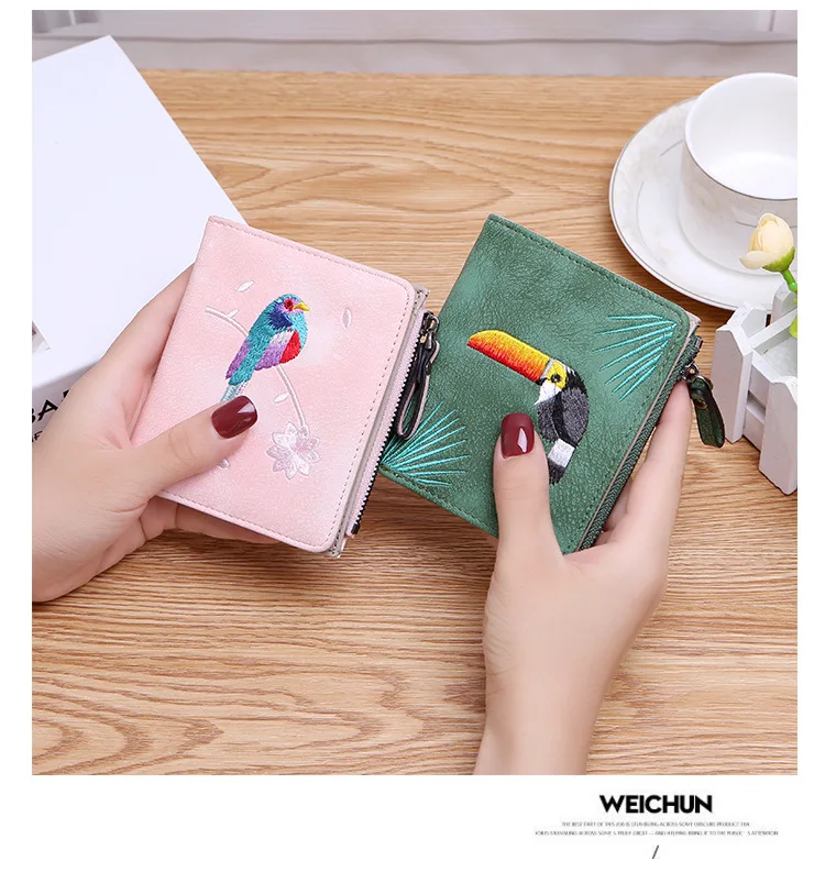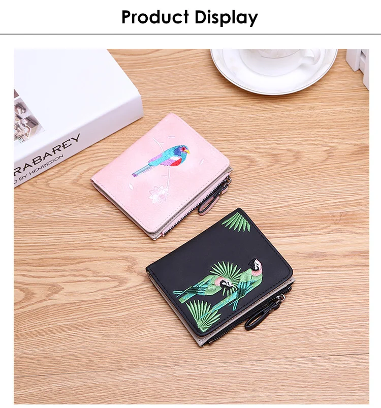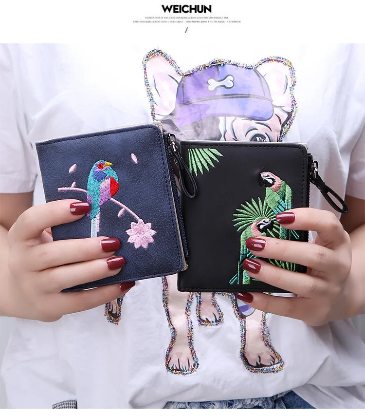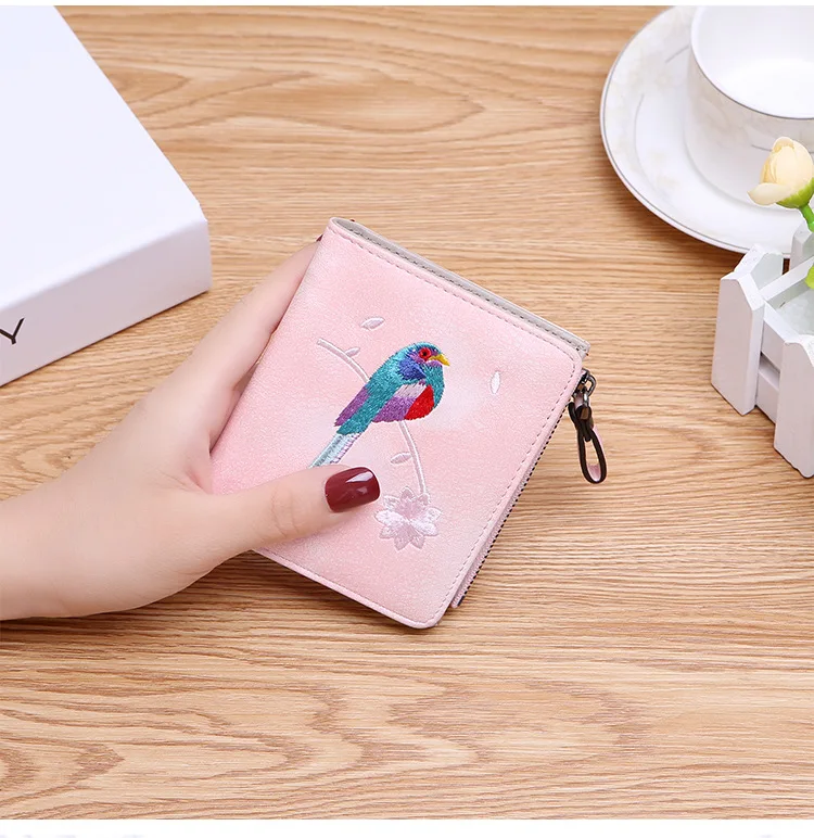 Модный кошелек с вышивкой птиц 2 складной кошелек для женщин и девочек