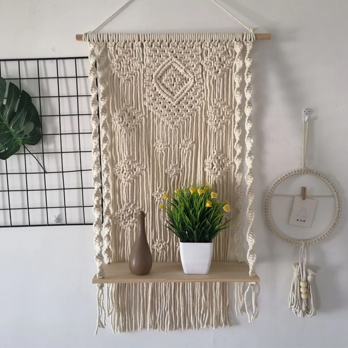 Изготовленные из натурального хлопкового каната, эти настенные Подвески макраме были плетеные, все подвески макраме надежно построены и могут быть настенным креплением.