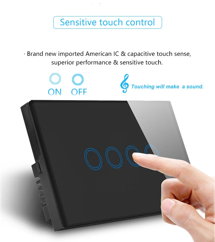 Сенсорный выключатель UK Стандартный 4-канальный выключатель света 600 Вт с сенсорным переключателем потолочного вентилятора 600 Вт Хрустальное стекло 147*86 мм Индия Переключатель