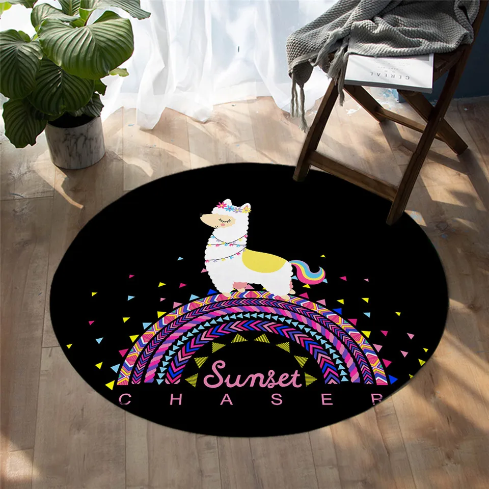Милые ковры для спальни с изображением ламы единорог круглый ковер гостиной