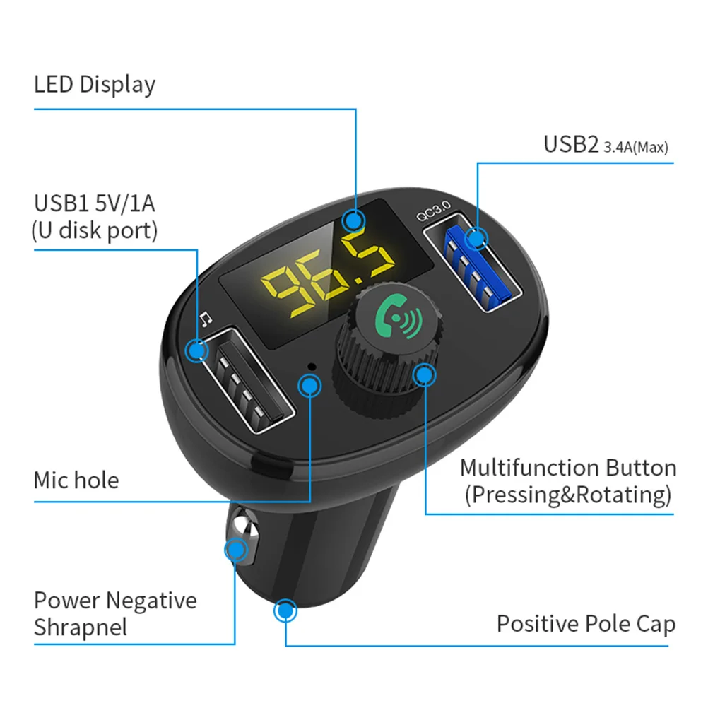 - Support FM full frequency point transmission function, a total of 206 frequency points.