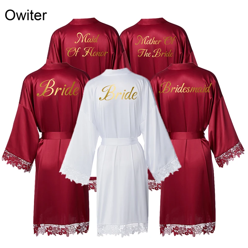 Женское длинное атласное кимоно Owiter, атласное платье невесты, платье подружки невесты с кружевной отделкой, однотонное свадебное платье, халат, одежда для сна