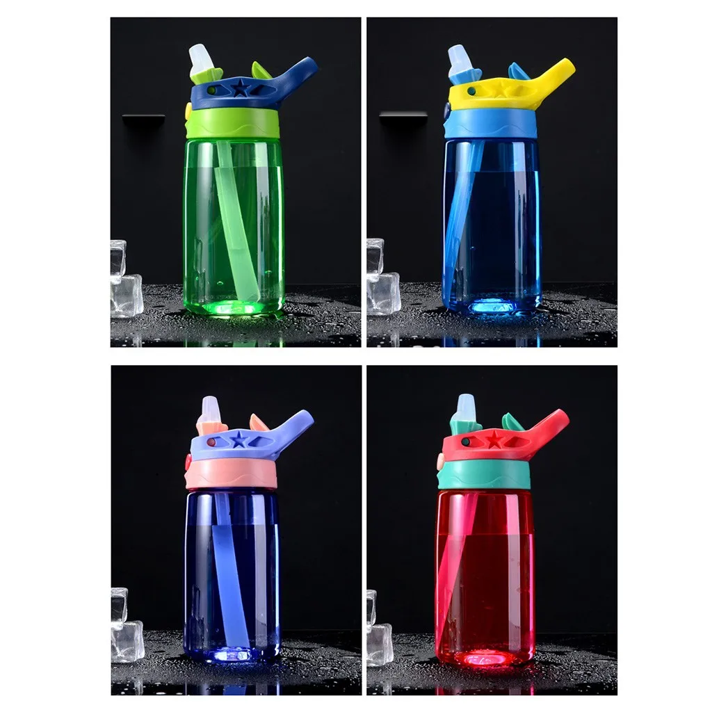 Детская бутылка для воды 480 мл с соломенной крышкой и ручкой, легко использовать в школе