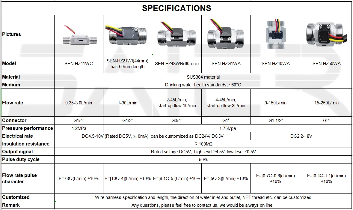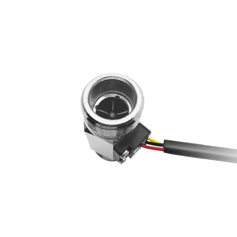 Датчик расхода воды SAIER изготовлен из высококачественного материала SUS304, состоит из корпуса из нержавеющей стали, ротора воды и датчика эффекта холла. Интегрированный Датчик эффекта Холла выводит соответствующий импульсный сигнал с каждым вращением и запечатывается из водопровода и позволяет сенсору оставаться в безопасности и сухости. Теория проста: Когда вода течет через ротор, ротор рулонов. Его скорость меняется с разной скоростью потока. Датчик эффекта Холла выводит электрический пульс с каждым вращением. Датчик очень прочный и долговечный в использовании, его Максимальное давление воды составляет 1,75 МПа. Легкий и имеет компактный размер, стабильную работу, низкое давление воды, очень легко установить и безопасно использовать. И он может быть идеально использован для водонагревателей, диспенсер для воды, очиститель воды, торговый автомат для воды, Кофеварка, Устройство измерения расхода, машина управления водой и так далее. Модель: SEN-HZ43WB Материал: Нержавеющая сталь Цвет: серебро Подключение: G3/4 Рабочее напряжение: DC4.5 ~ 18 В Диапазон потока: 2 ~ 45 л/мин Пусковой поток: 1л/мин Давление Производительность: 1.75MPA Спецификация линии и направление установки: по индивидуальному заказу Рабочая температура: 0-80 °C Номинальное напряжение: 5 В постоянного тока Lead Way: Красный в соединении анода Желтая Выходная линия сигнала Черный GND Подключите катод Посылка включает в себя: 1 шт. датчик расхода воды из нержавеющей стали