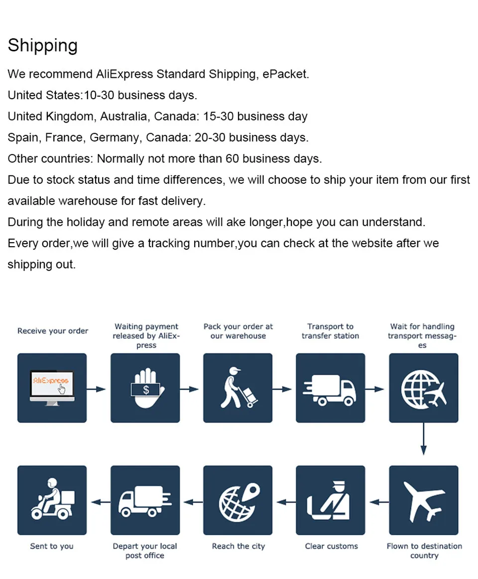 Пожалуйста, смотрите здесь: 1.Если вы не удовлетворены по какой-либо причине, пожалуйста, не оставляйте отрицательный/нейтральный отзыв или споры в ближайшее время. Пожалуйста, свяжитесь с нашей службой поддержки клиентов. Мы будем усердно работать, чтобы каждый клиент был удовлетворен нашими товарами и услугами и решал любые проблемы для вас. 2.В том случае, если вы удовлетворены нашими товарами, то товар, который вы получили, пожалуйста, оставьте нам положительный отзыв и 5 точка DSR. Мы будем благодарны, если вы поделились нашим магазином с друзьями и семьей. Спасибо! 3.Этот продукт не искусственно упакован, может быть 1-3 отклонения, я надеюсь, вы понимаете. Пожалуйста, не стесняйтесь обращаться к нам, если у вас есть какие-либо вопросы.